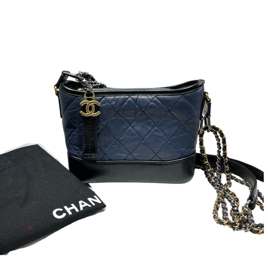 Used Chanel Calfskin Leather Gabrielle small Cross Body Bag Navy GHW