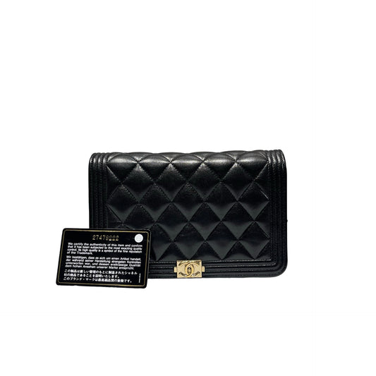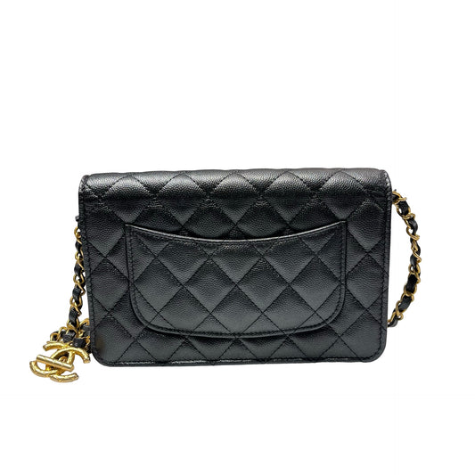 Used Chanel Caviar Leather Wallet on Chain Black GHW