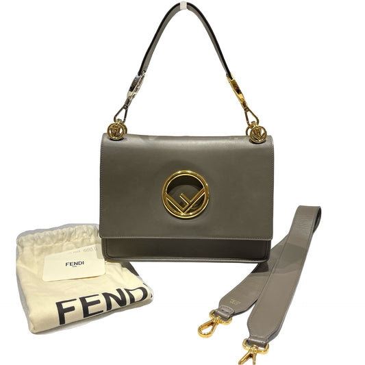 Used Fendi Calfskin Leather Kan I F Shoulder Bag Gray GHW