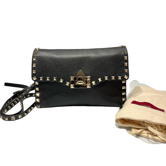 Used Valentino Calfskin Leather Cross Body Bag Black GHW