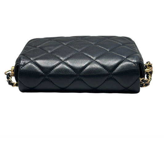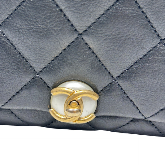 Used CHANEL Pearl Flap Chain Shoulder Bag Black GHW