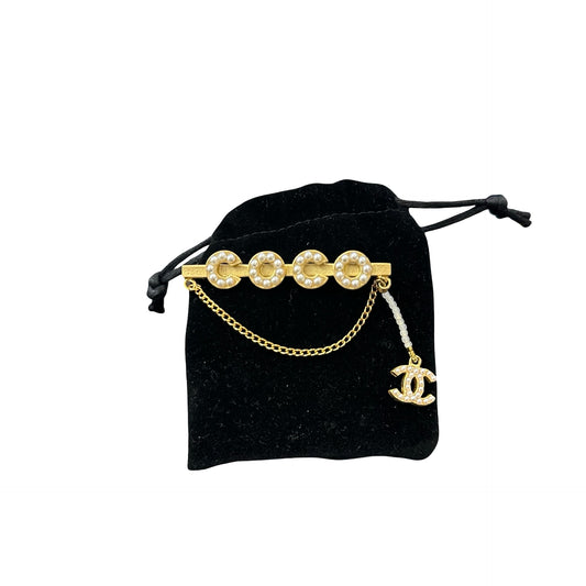 CHANEL VINTAGE COCO BROOCH WITH PEARLS [3001016]