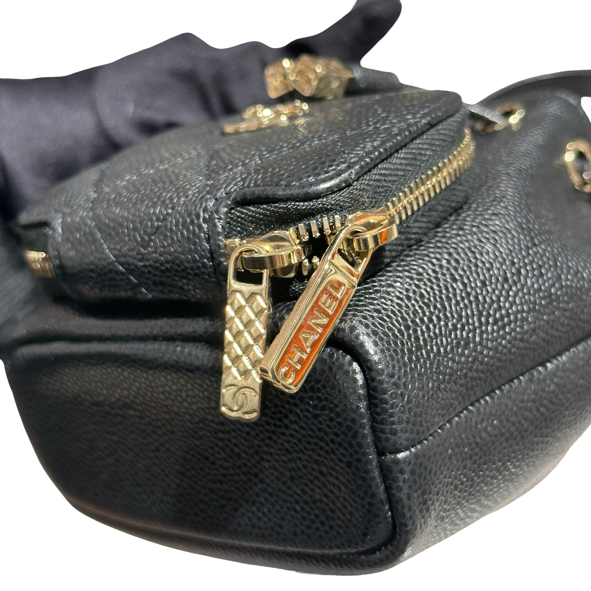 CHANEL MINI BUCKET SHOULDER BAG BLACK GHW CAVIAR SKIN [3001008]