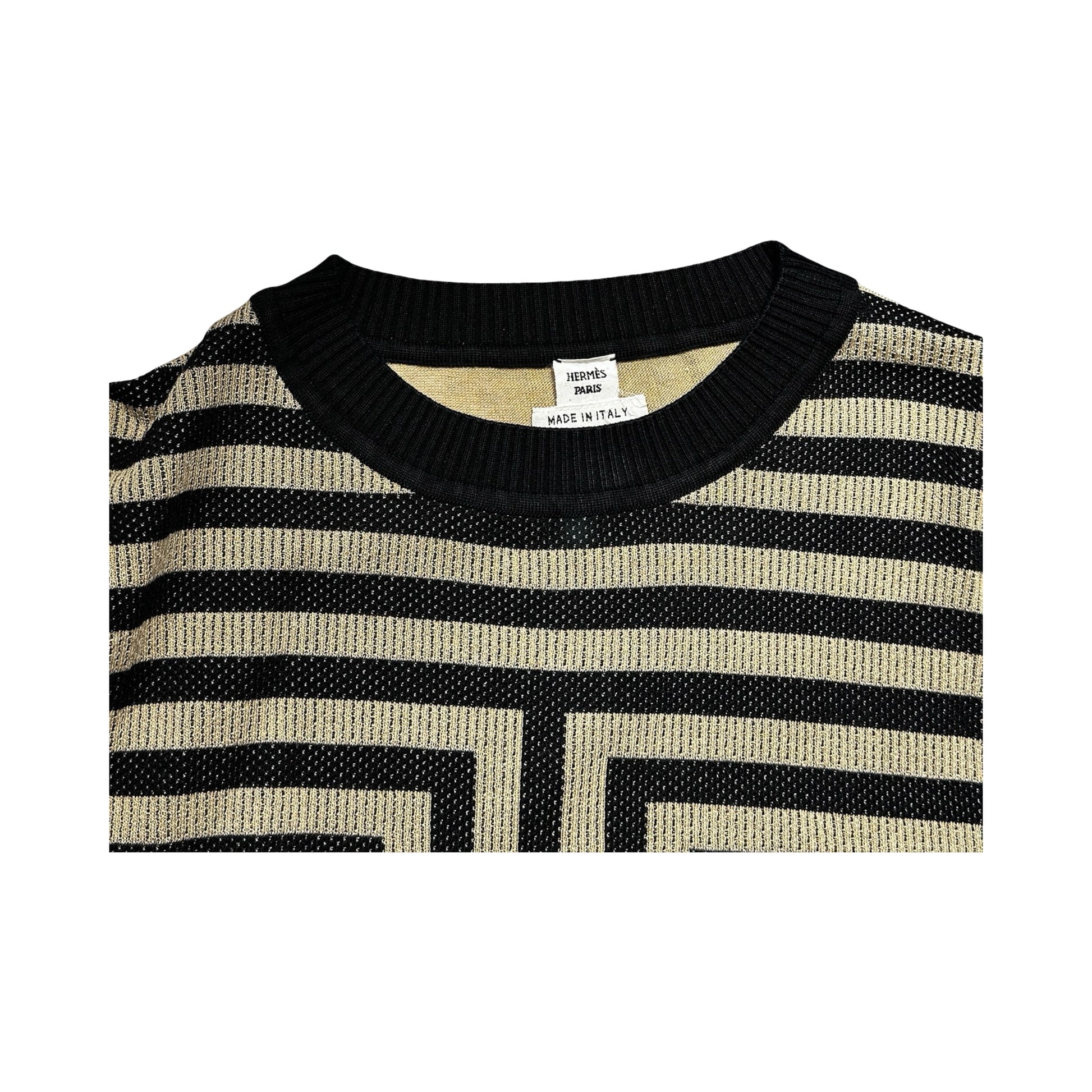 HERMES BLACK&BEIGE STRIPED SWEATER [20000272]