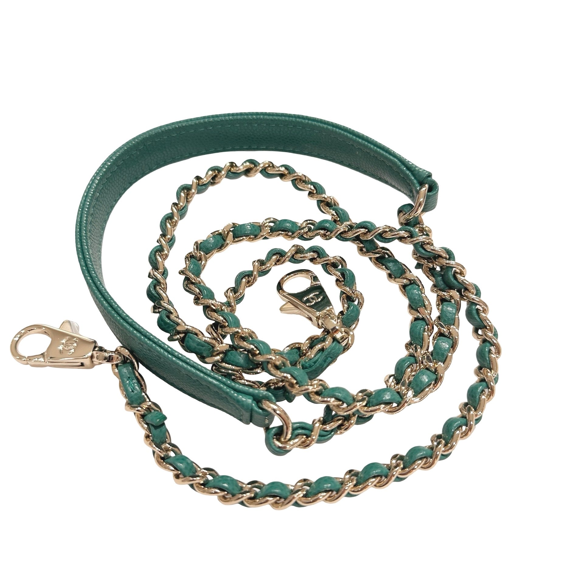 Used CHANEL Calfskin Leather Mini coco handle Two Way Shoulder Bag Green GHW