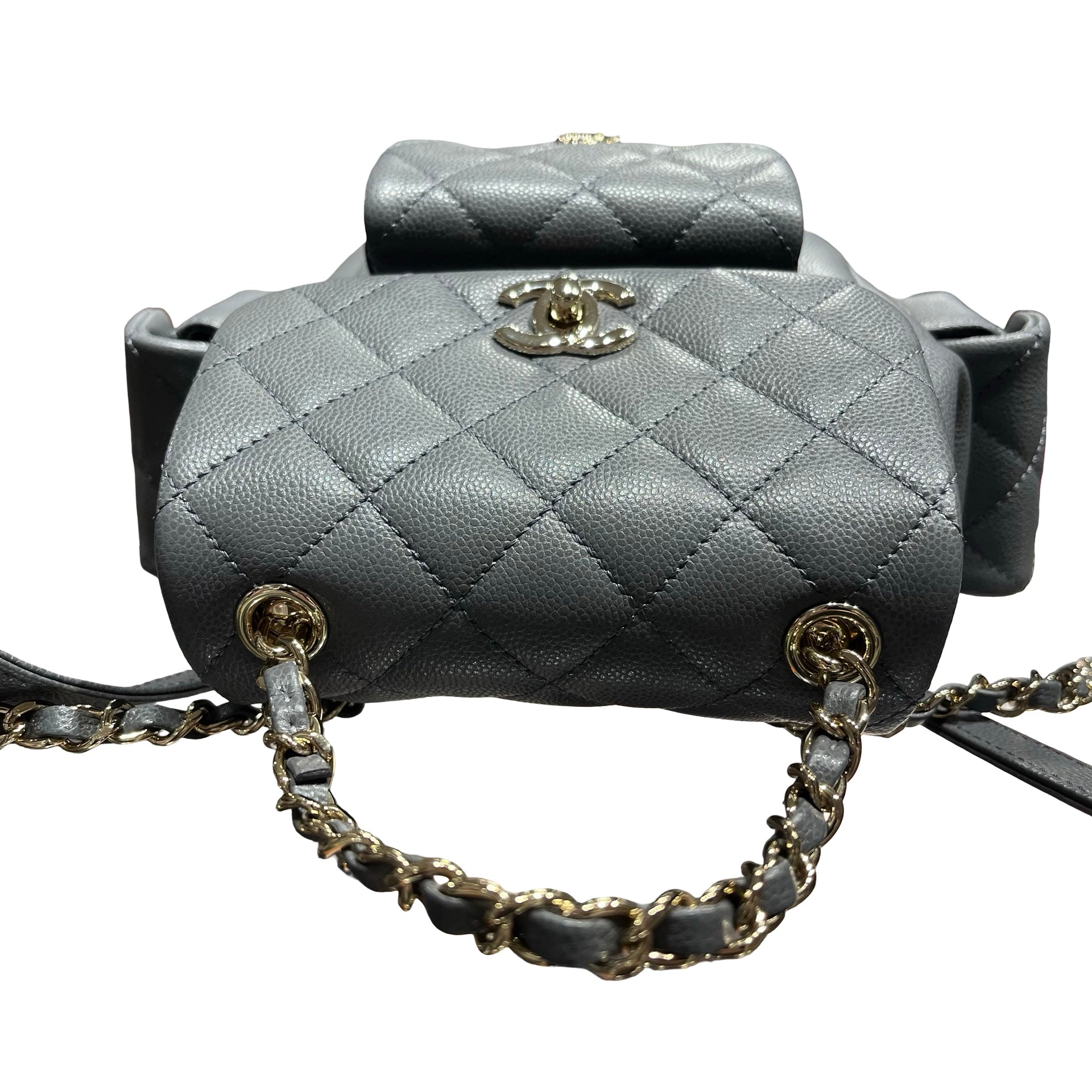 Used CHANEL Caviar Leather Small Duma Backpack Grey GHW