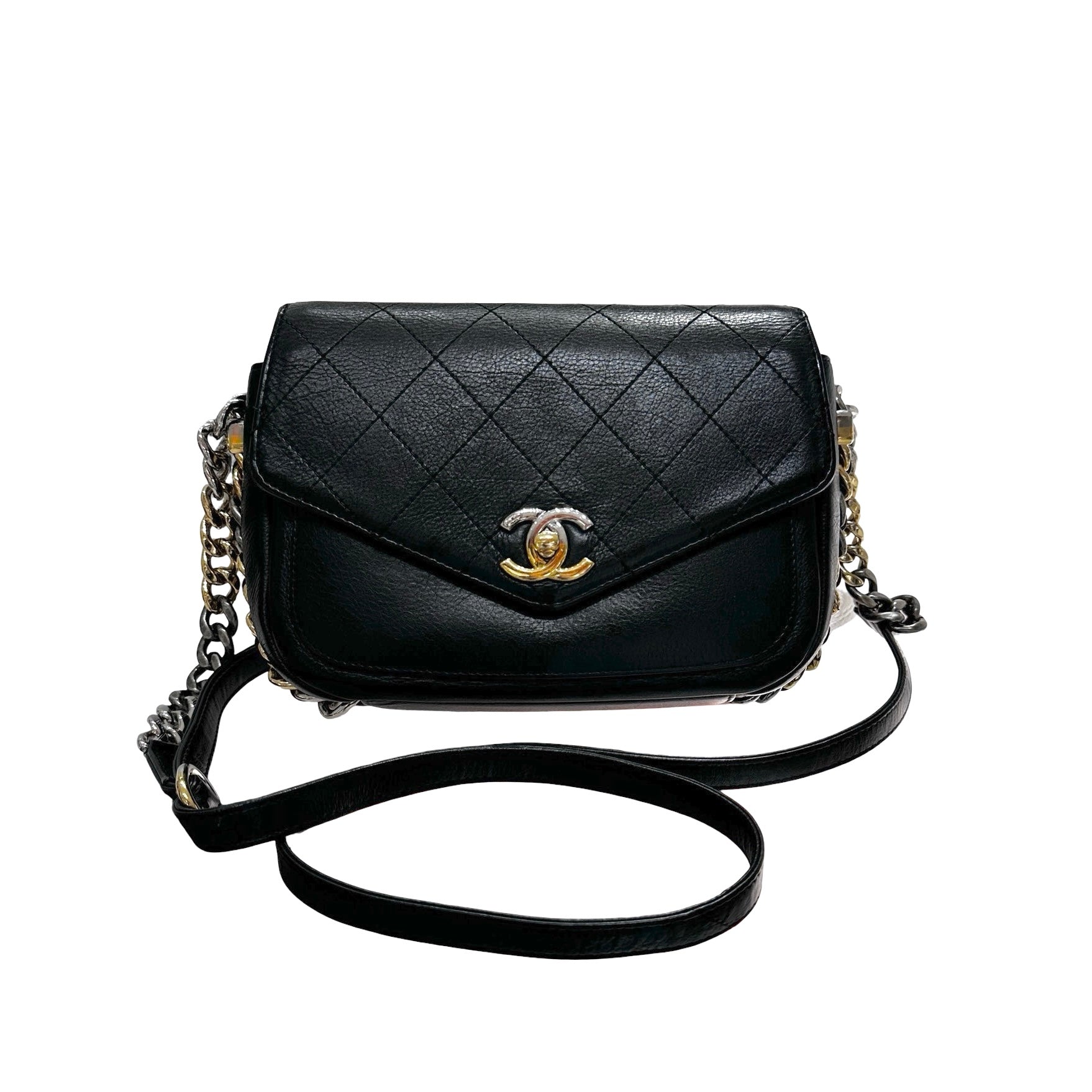 Used CHANEL Cross Body Bag Black GHW PHW