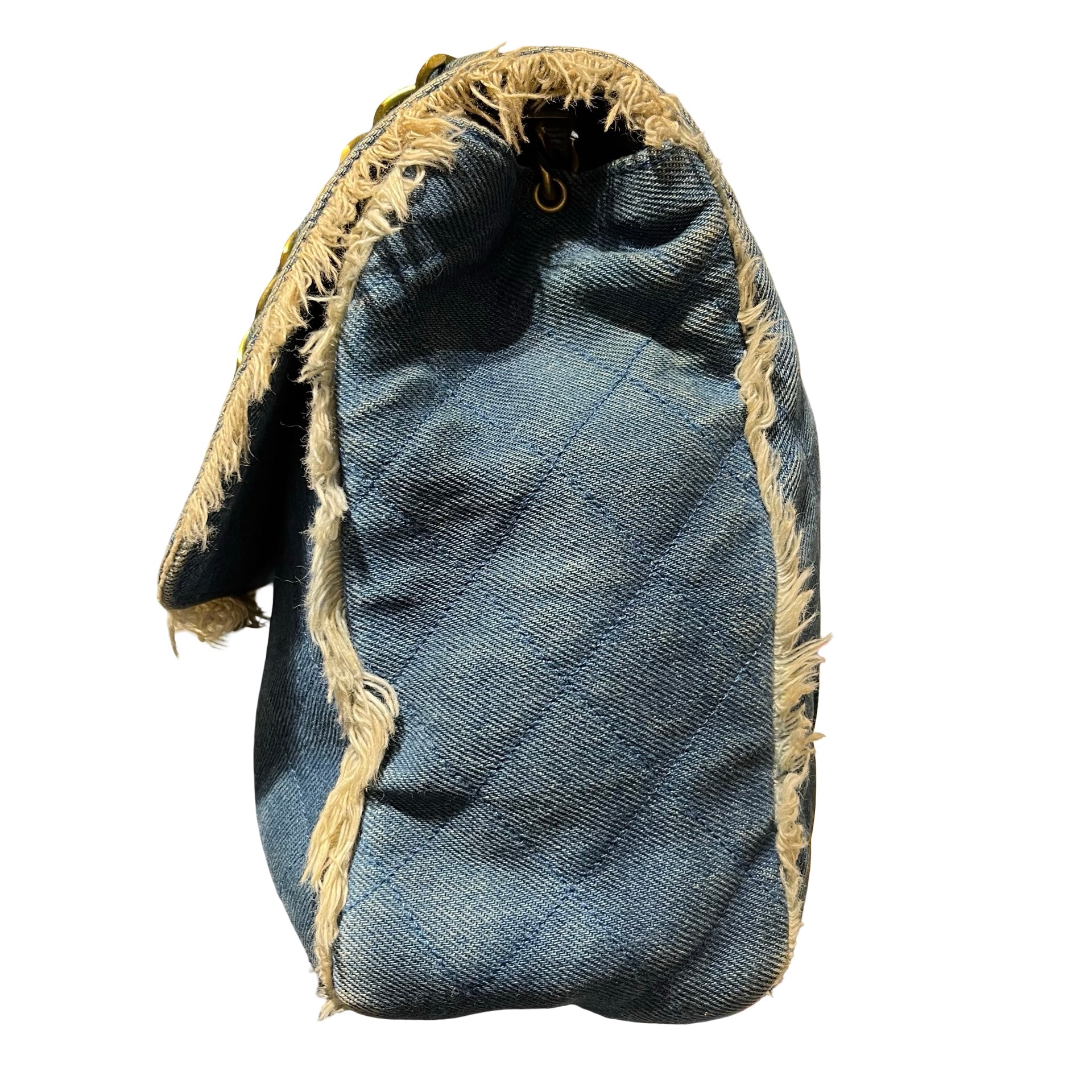 Used CHANEL Denim Matelasse Single Flap Chain Shoulder Bag Light Blue GHW