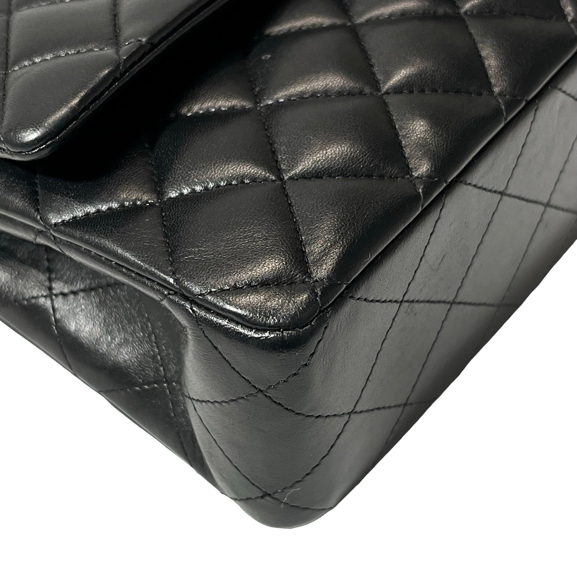Used CHANEL Lambskin Leather CF 25 Shoulder Bag Black PHW
