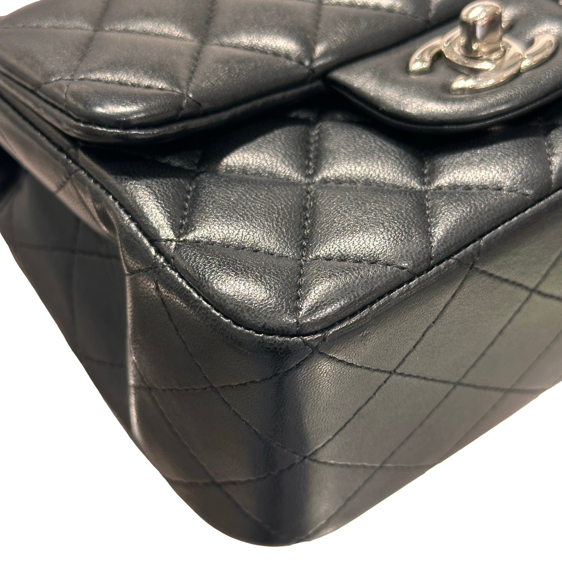Used CHANEL Lambskin Leather Mini flap 17cm Cross Body Bag Black PHW