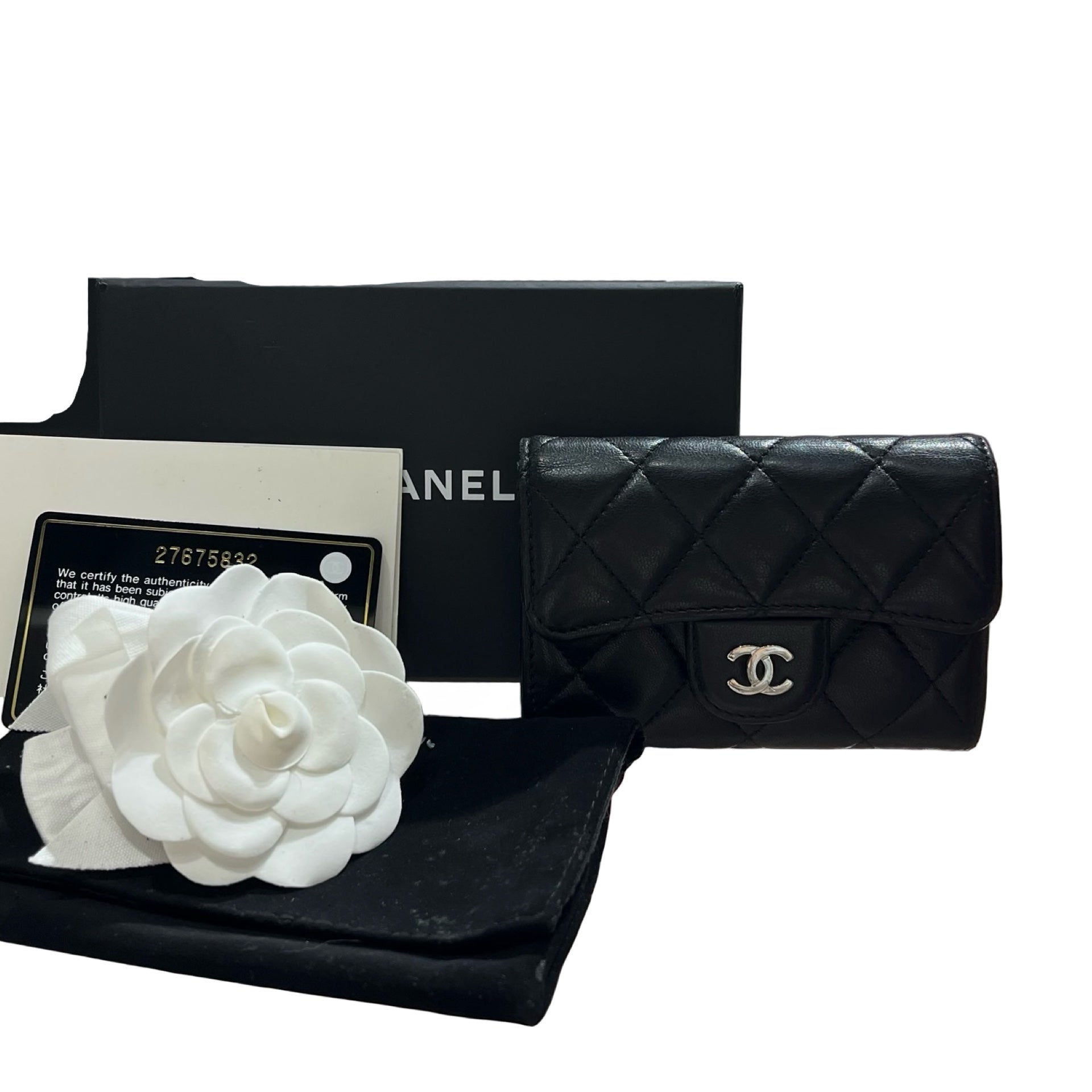 Used Chanel Lambskin Wallet Black PHW