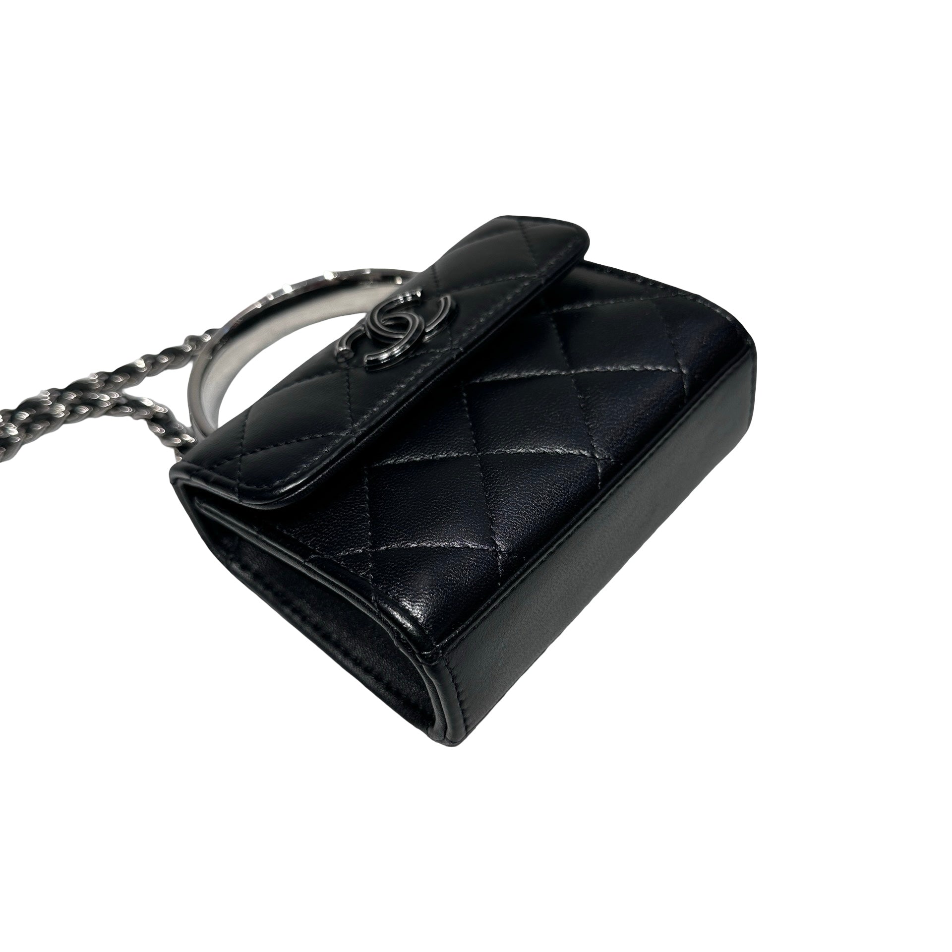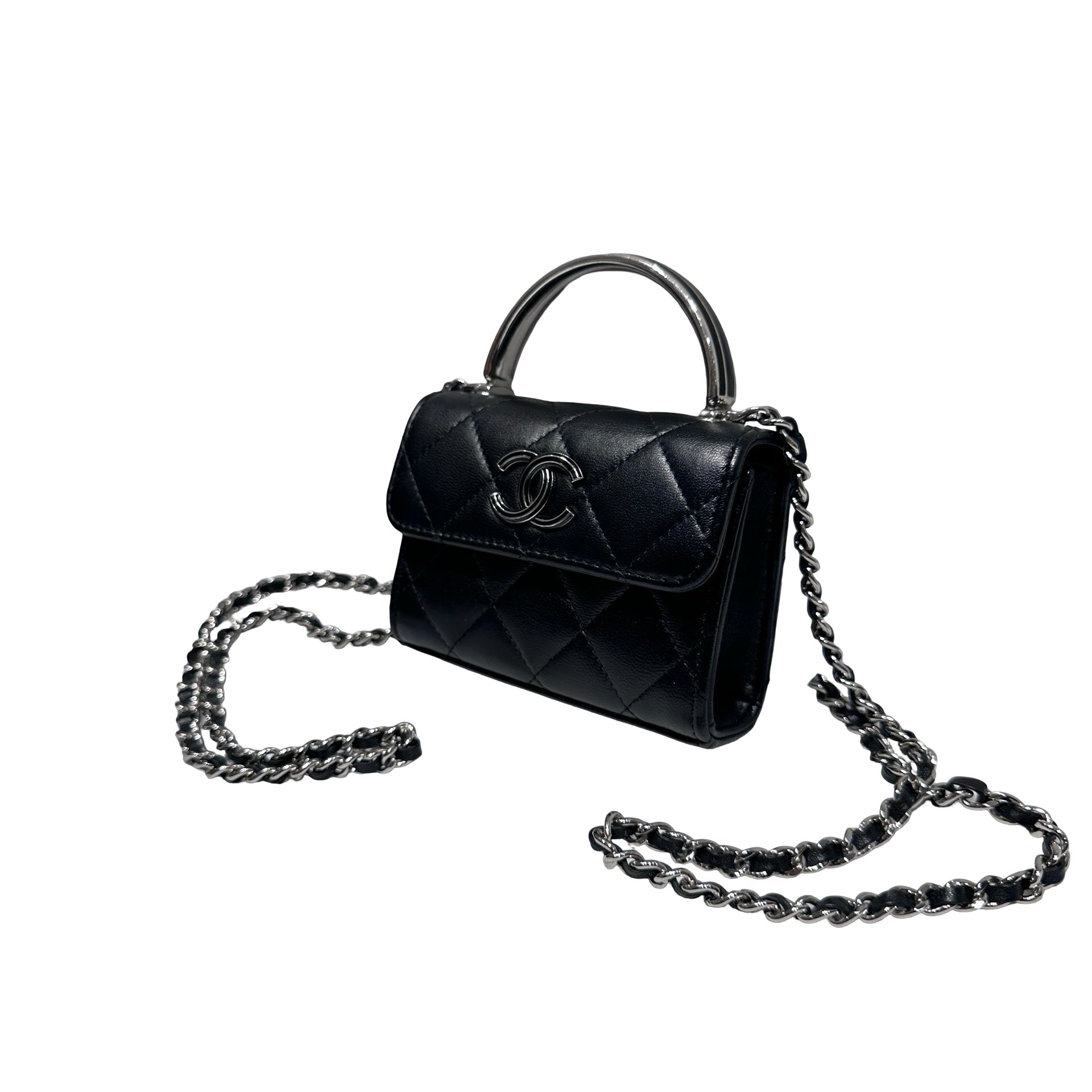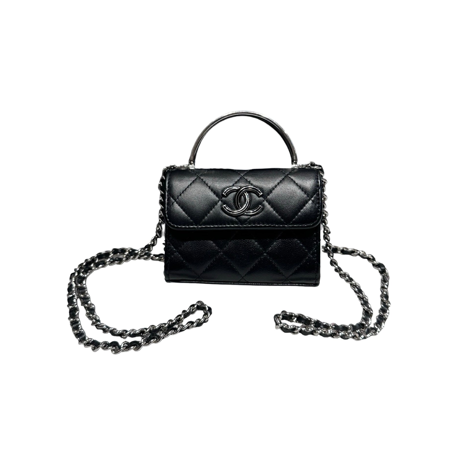 Used Chanel Mini with handle Chain Shoulder Bag Black PHW