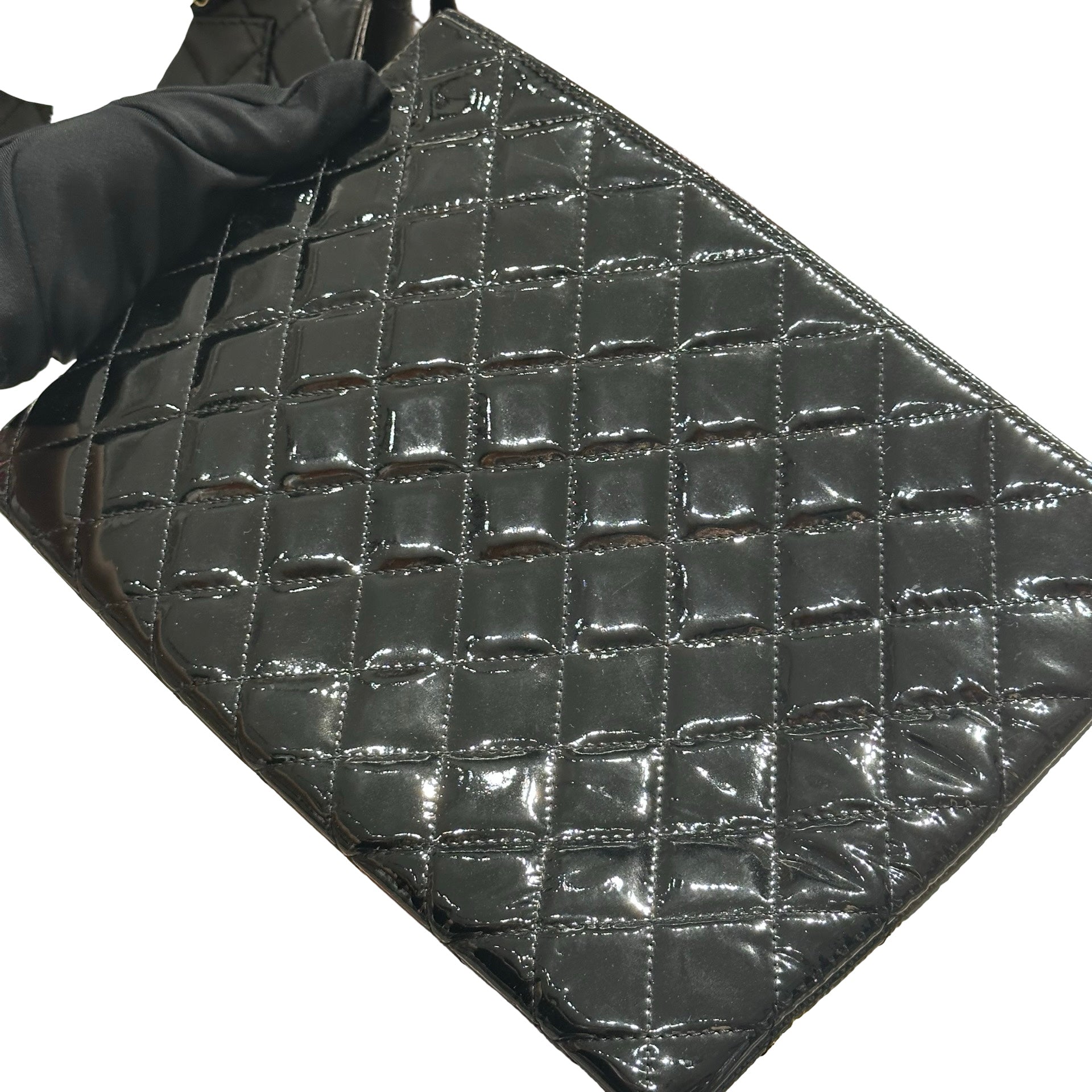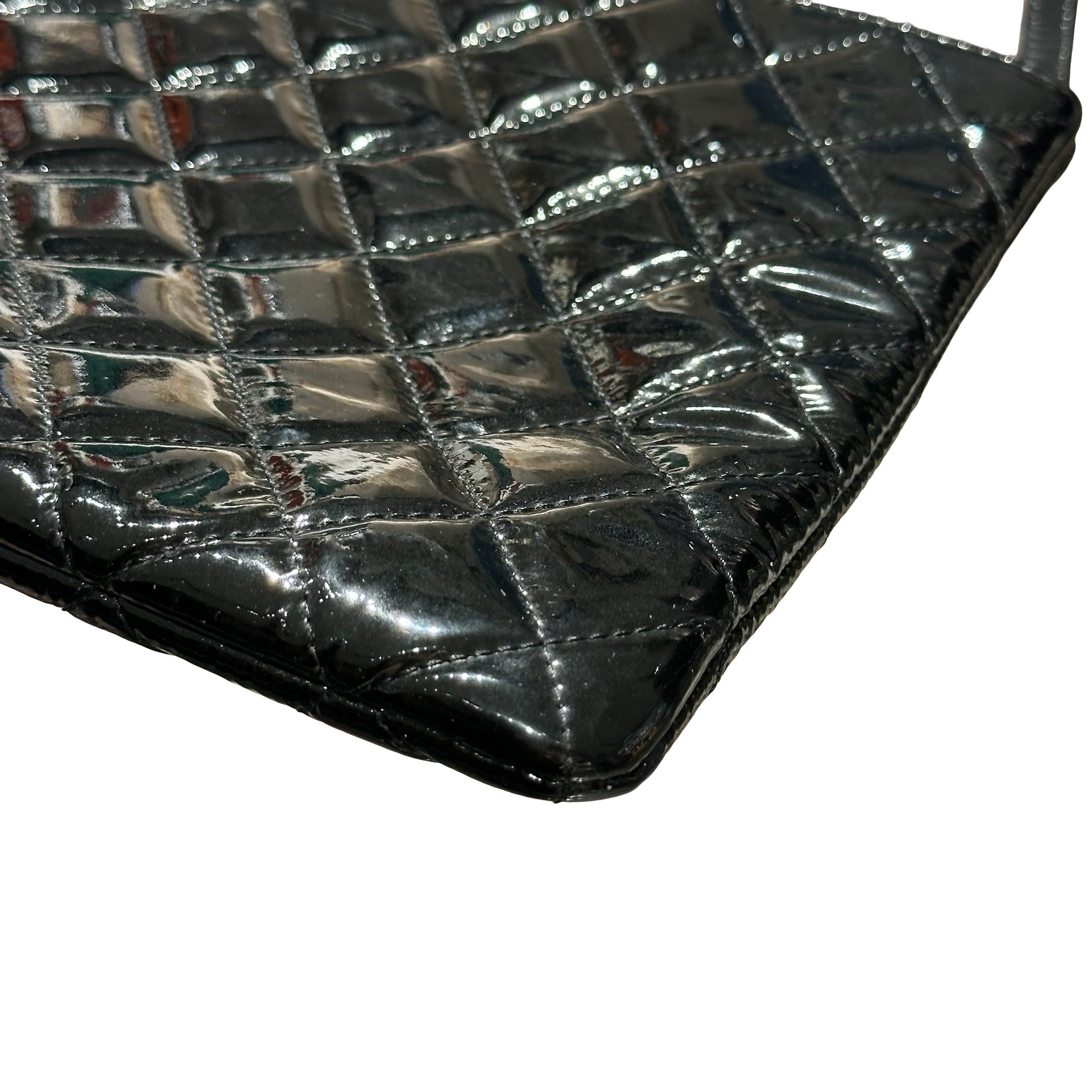 Used CHANEL Patent Leather Clutch Black PHW