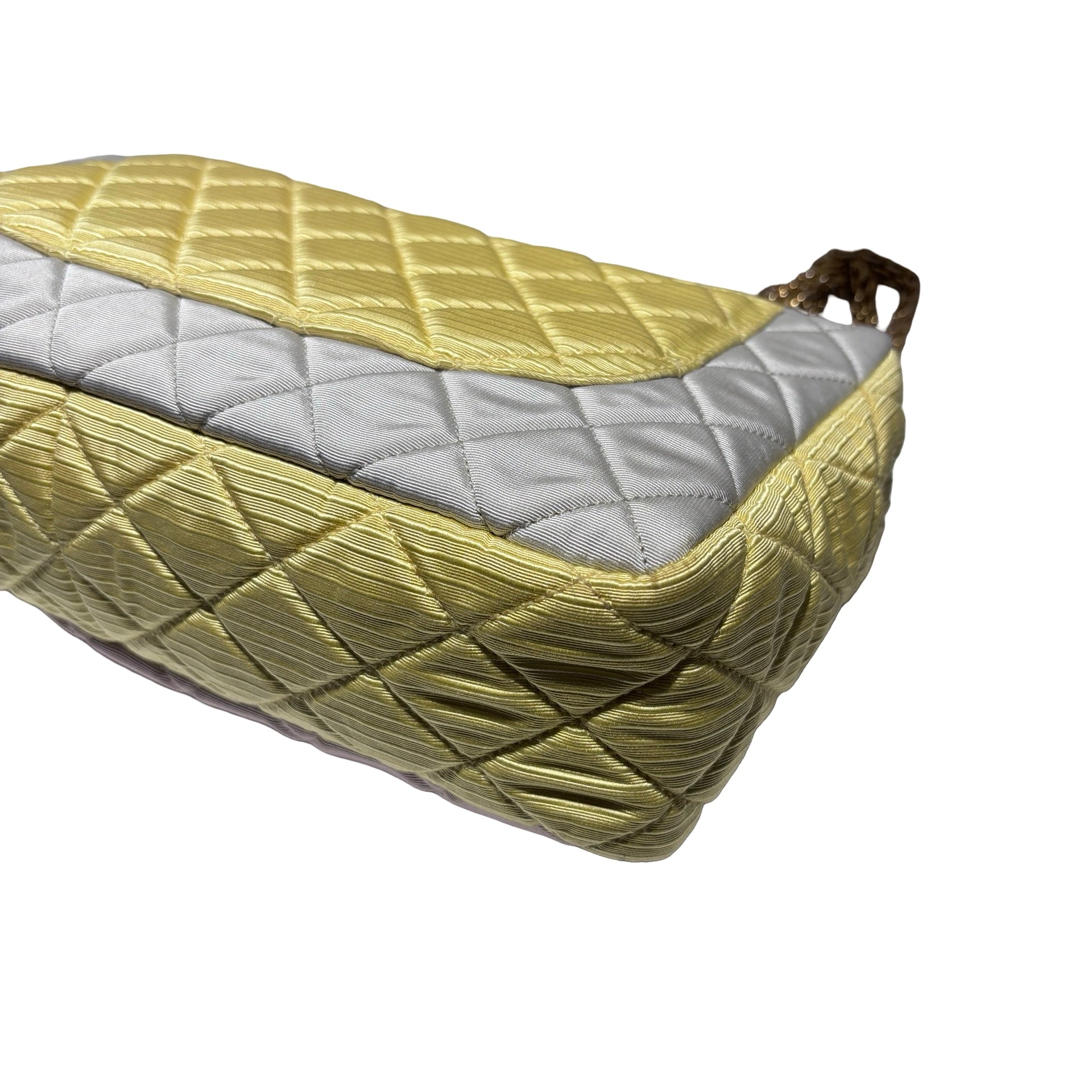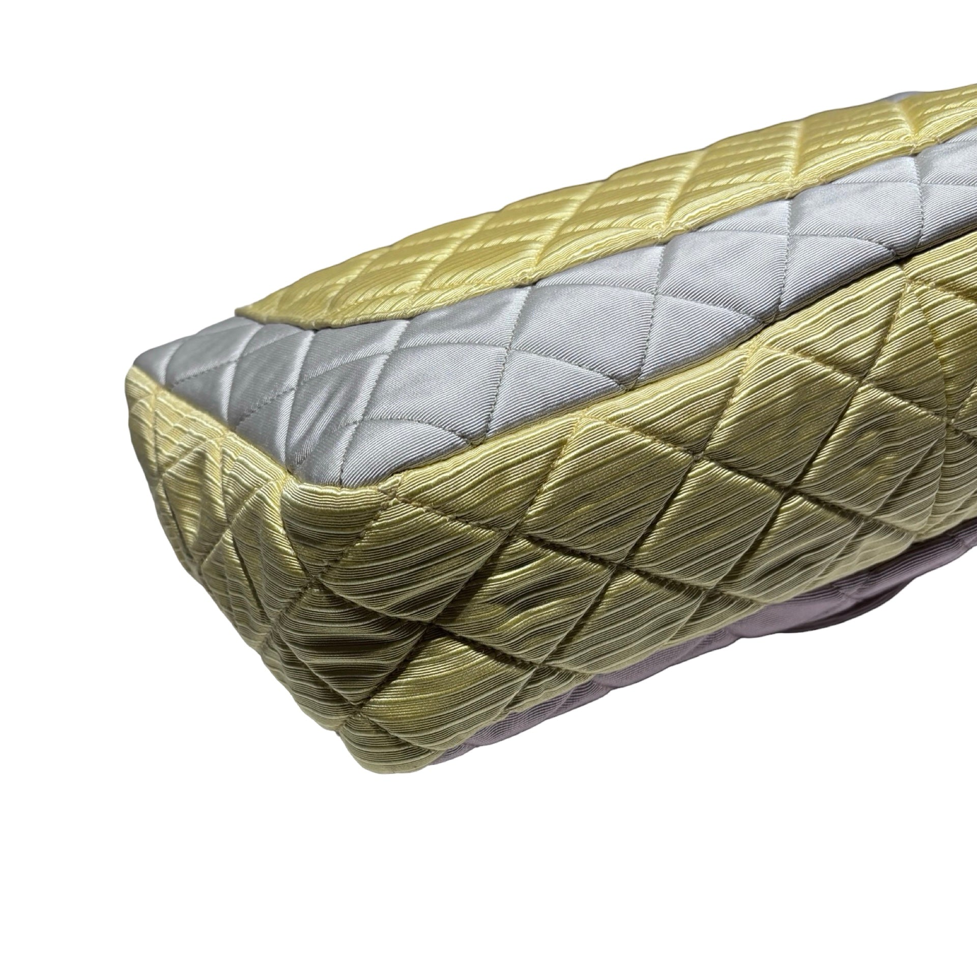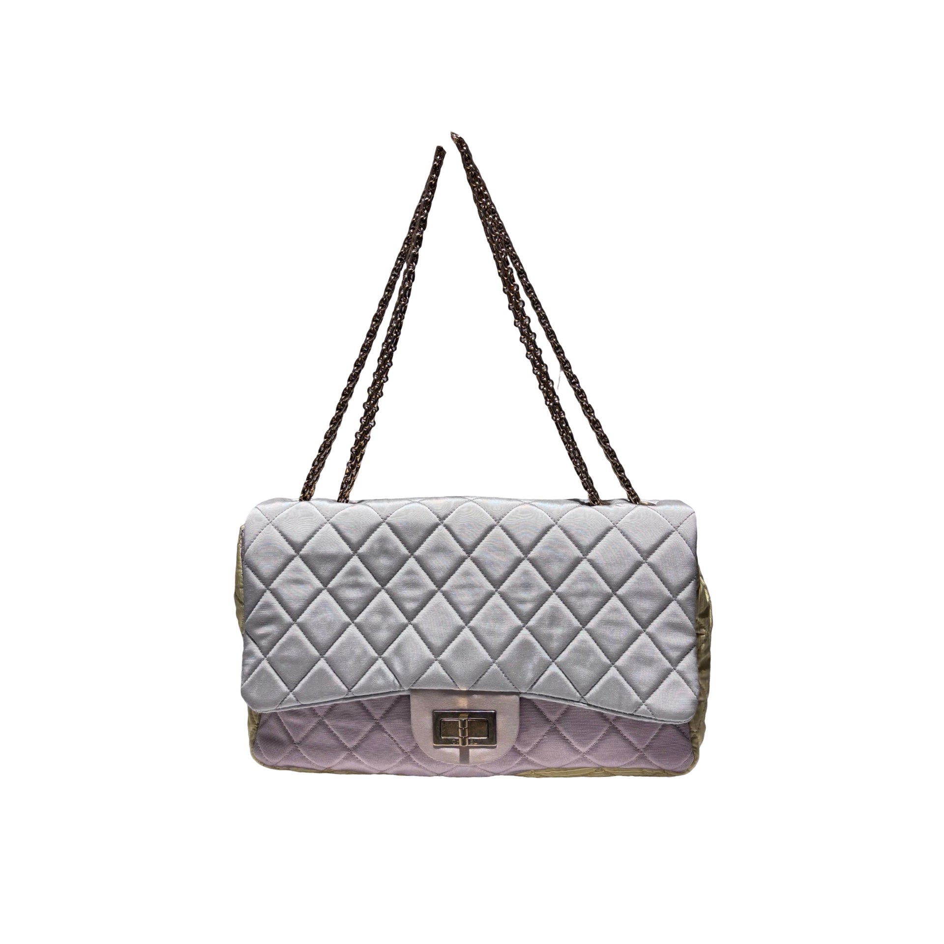 Used CHANEL Satin Reissue 2.55 Chain Shoulder Bag Grey Pink Yellow GHW