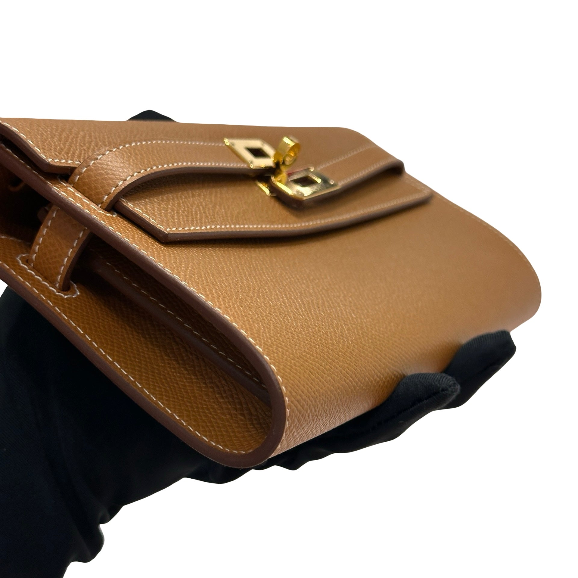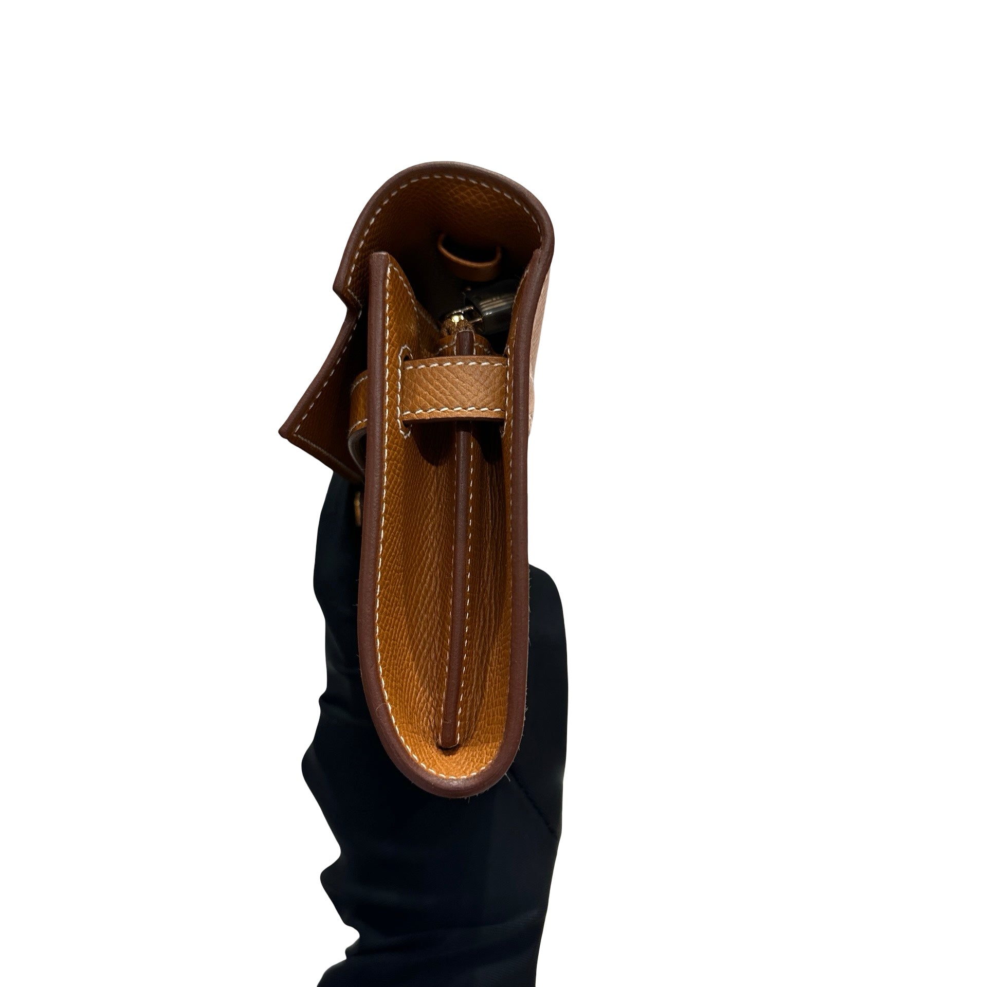 Used HERMÈS Epsom Leather KELLY. TO GO Cross Body Bag Gold (37) GHW