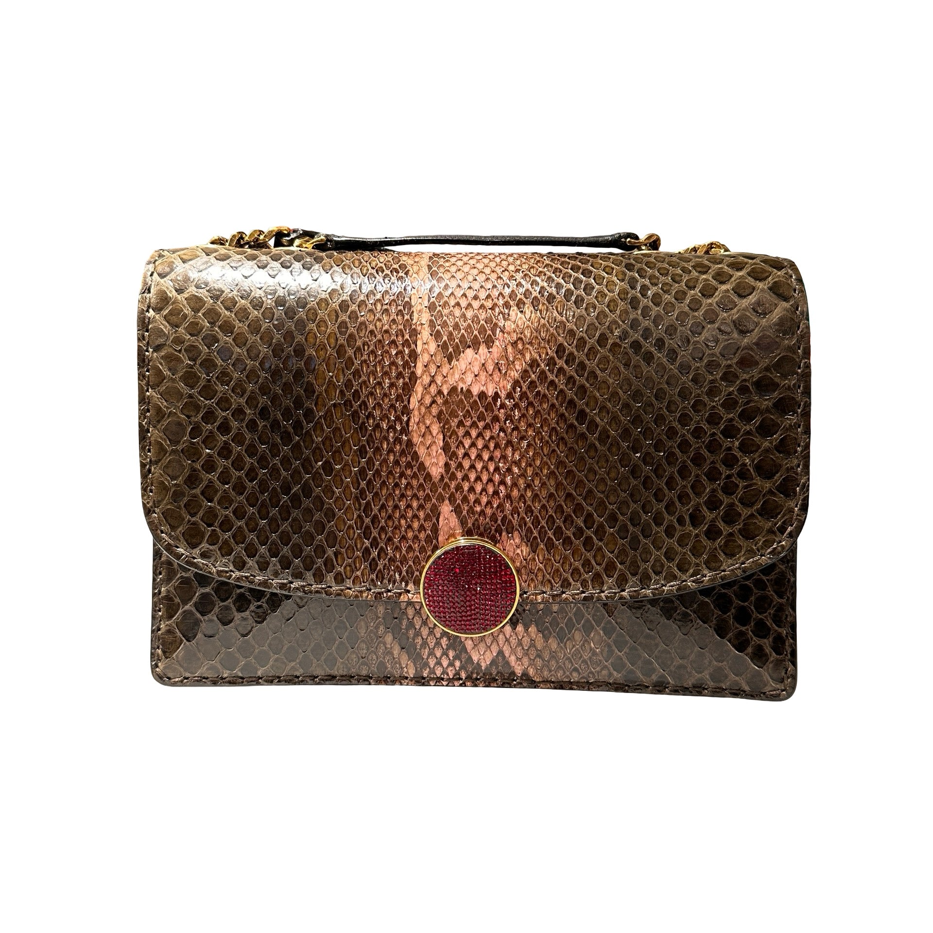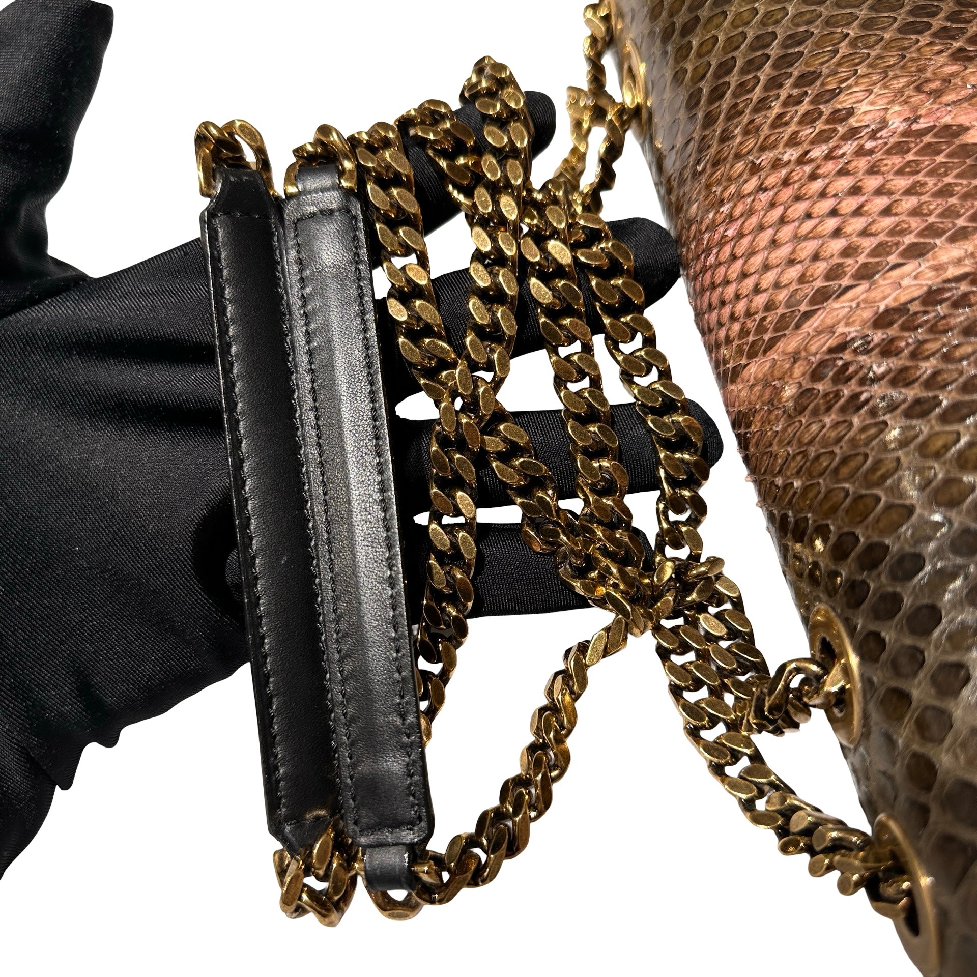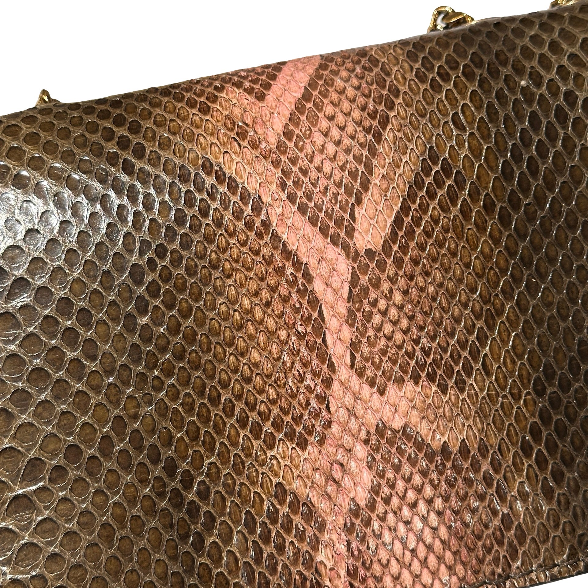 Used MARC JACOBS Snake Skin Chain Shoulder Shoulder Bag Brown