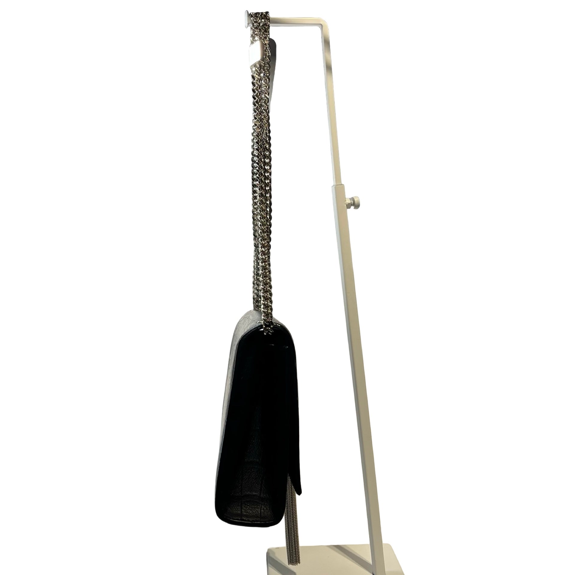 Used Saint Laurent Calfskin Leather Crocodile-Embossed Kate Tassel Chain Shoulder Bag Black PHW
