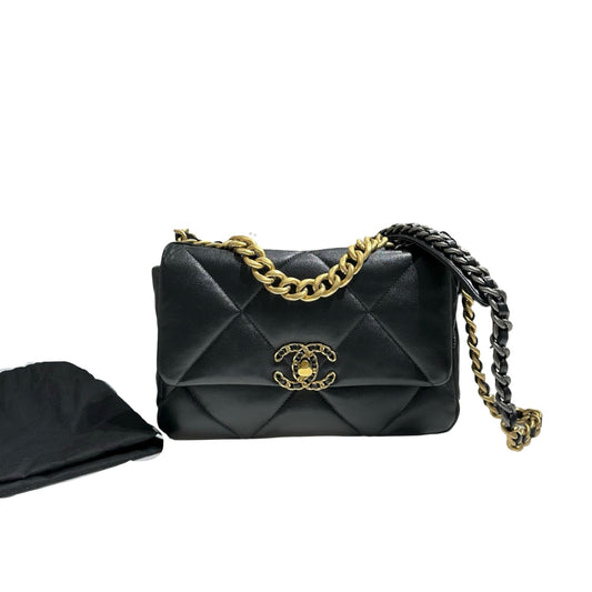 CHANEL 19 SMALL BLACK GHW LAMBSKIN [30001040]