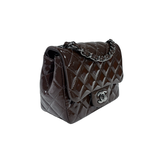 CHANEL MINI FLAP BROWN PATENT PHW [3000209]