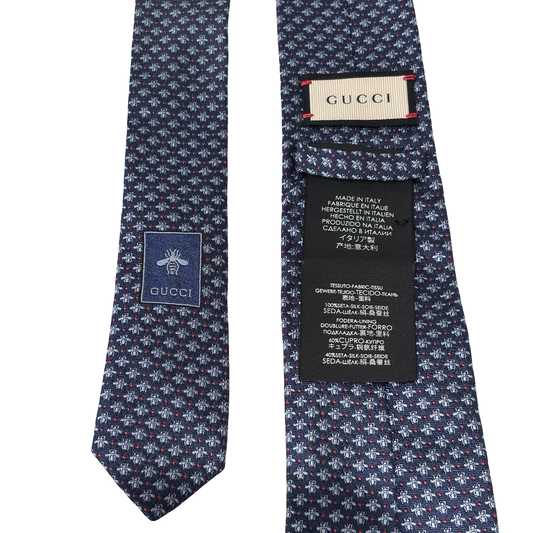 GUCCI BEE EMBROIDERY TIE BLUE [3000206]