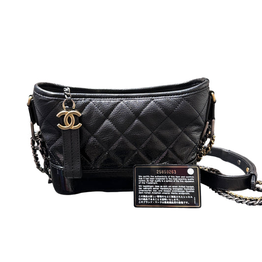 Used Chanel Calfskin Leather Gabrielle small Shoulder Bag GHW Black