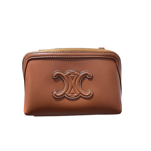 Used CÉLINE Clutch On Chain Shoulder Bag Brown GHW