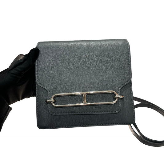 Used Hermès Clemence leather MINI ROULIS Shoulder Bag Gray PHW