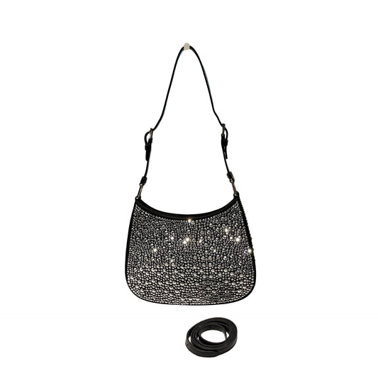 Used Prada Crystal Crystal Cleo Shoulder Bag Black PHW