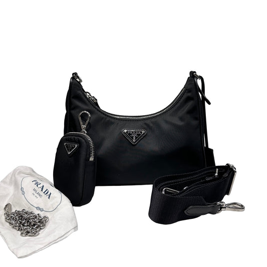 Used PRADA Canvas 3-in-1 Shoulder Bag Black