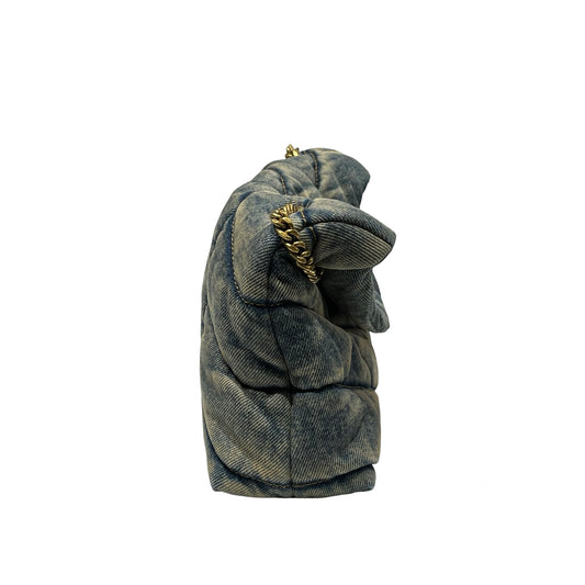Used Saint Laurent Denim Denim Louloe Puffer Shoulder Bag Blue GHW