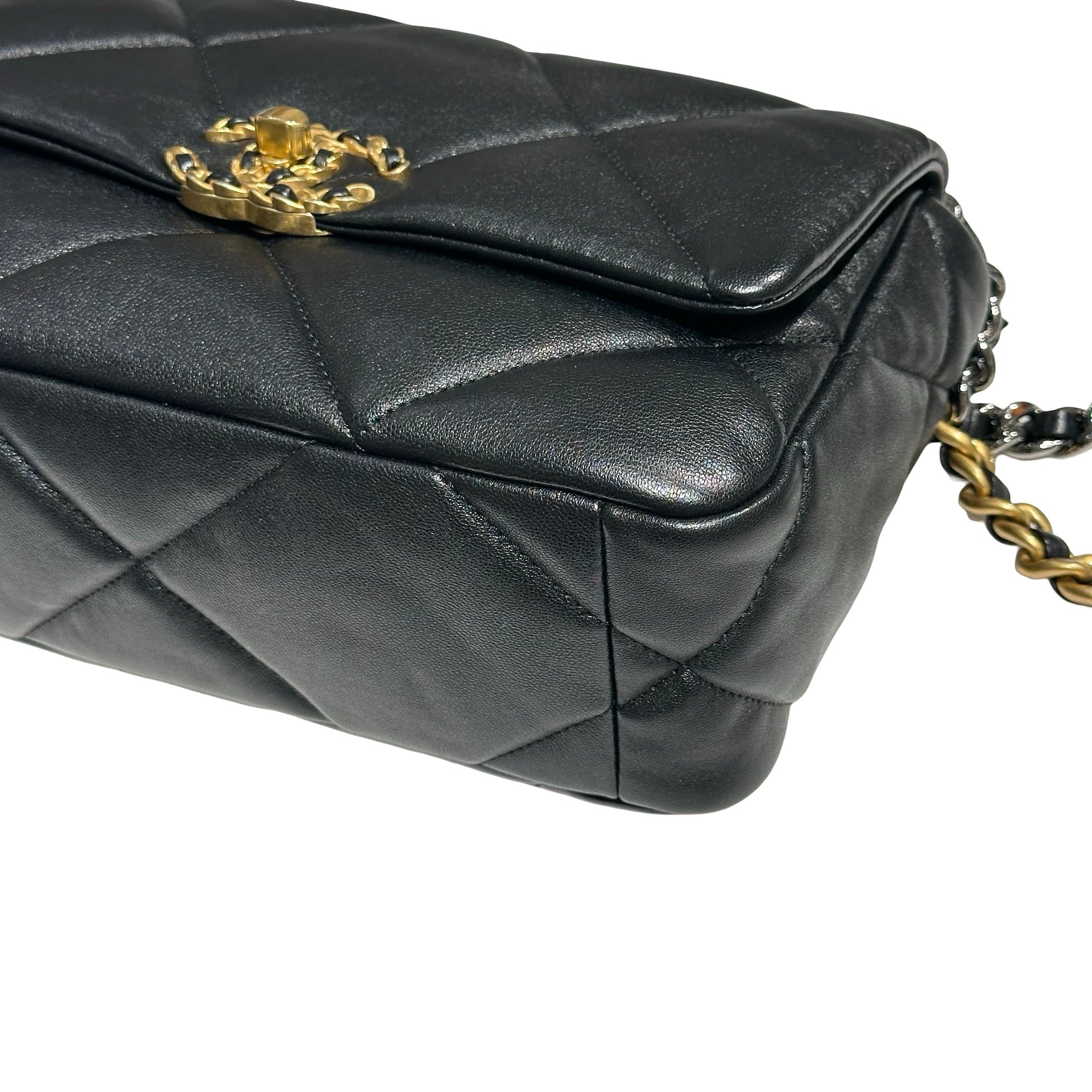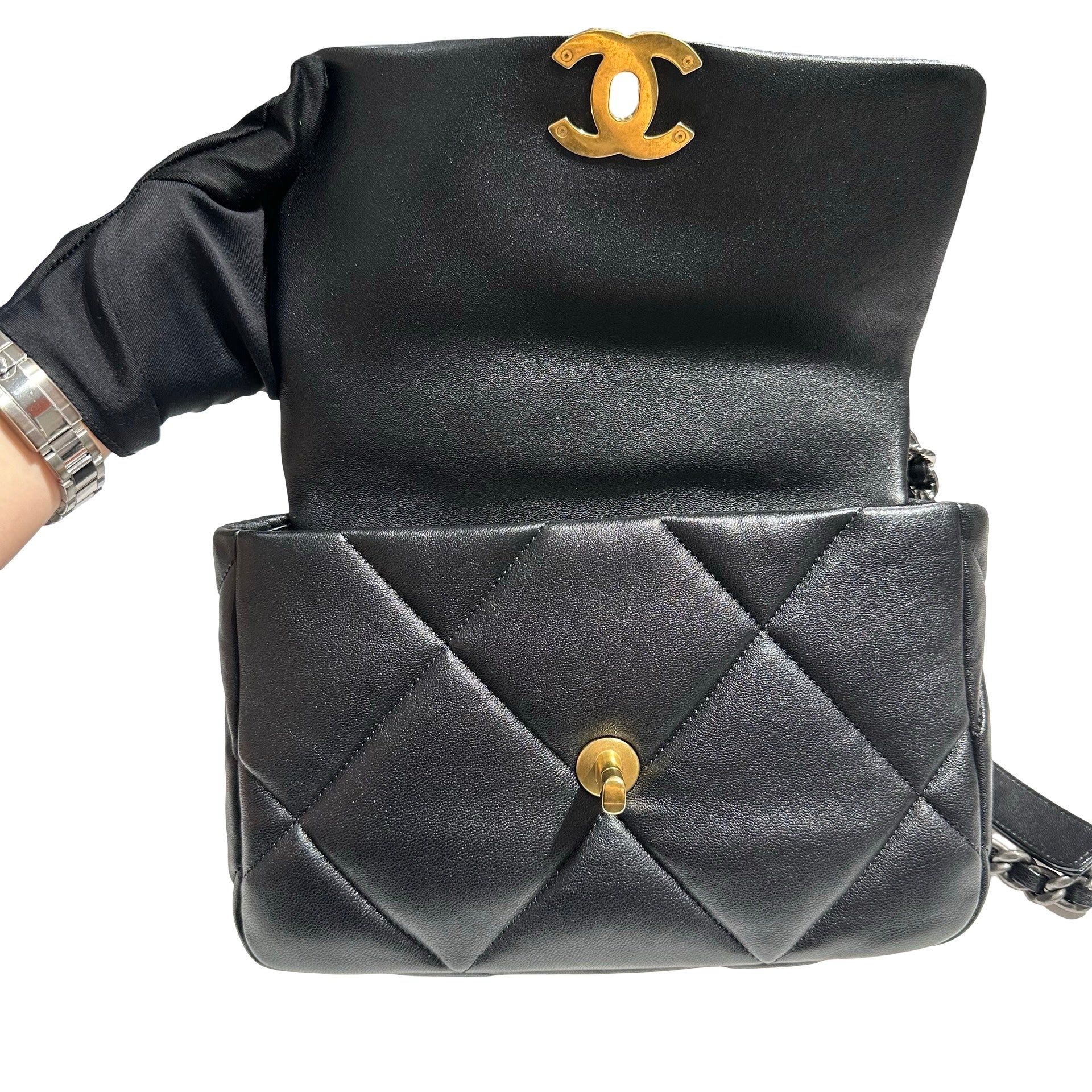 CHANEL 19 SMALL BLACK GHW LAMBSKIN [30001040]
