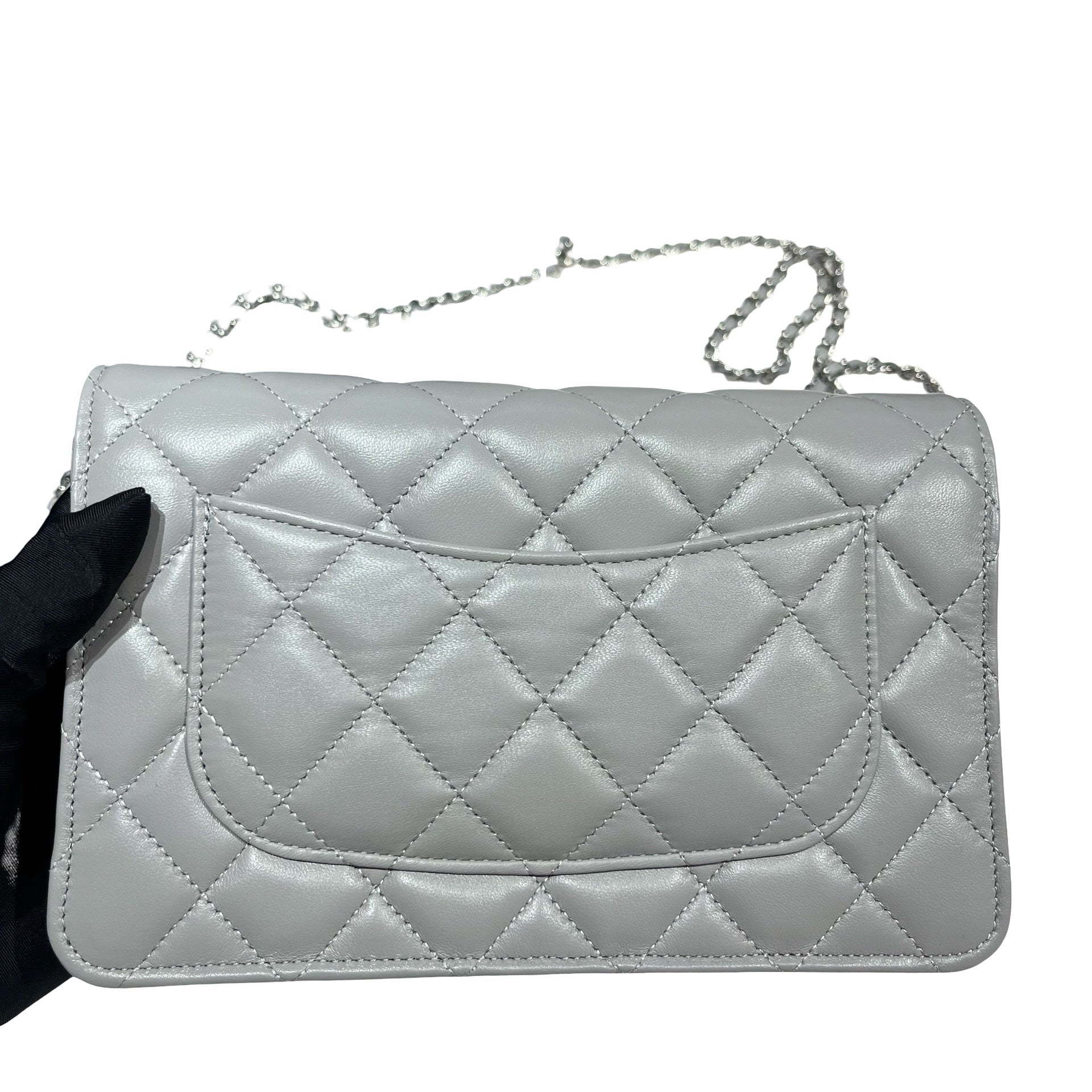 CHANEL GREY PHW WALLET ON CHAIN [3000626]