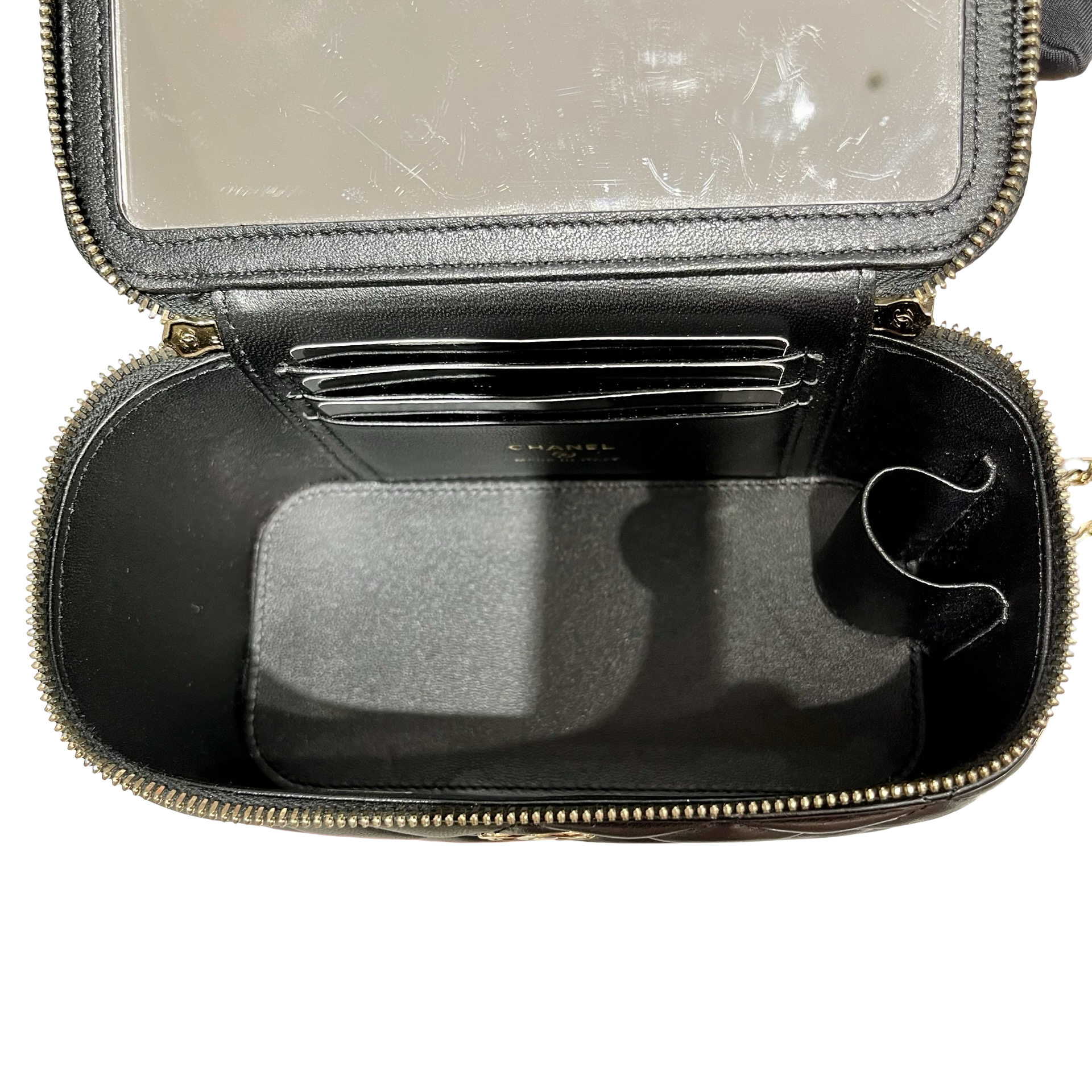 CHANEL VANITY CASE BLACK LAMBSKIN GHW [3000610]