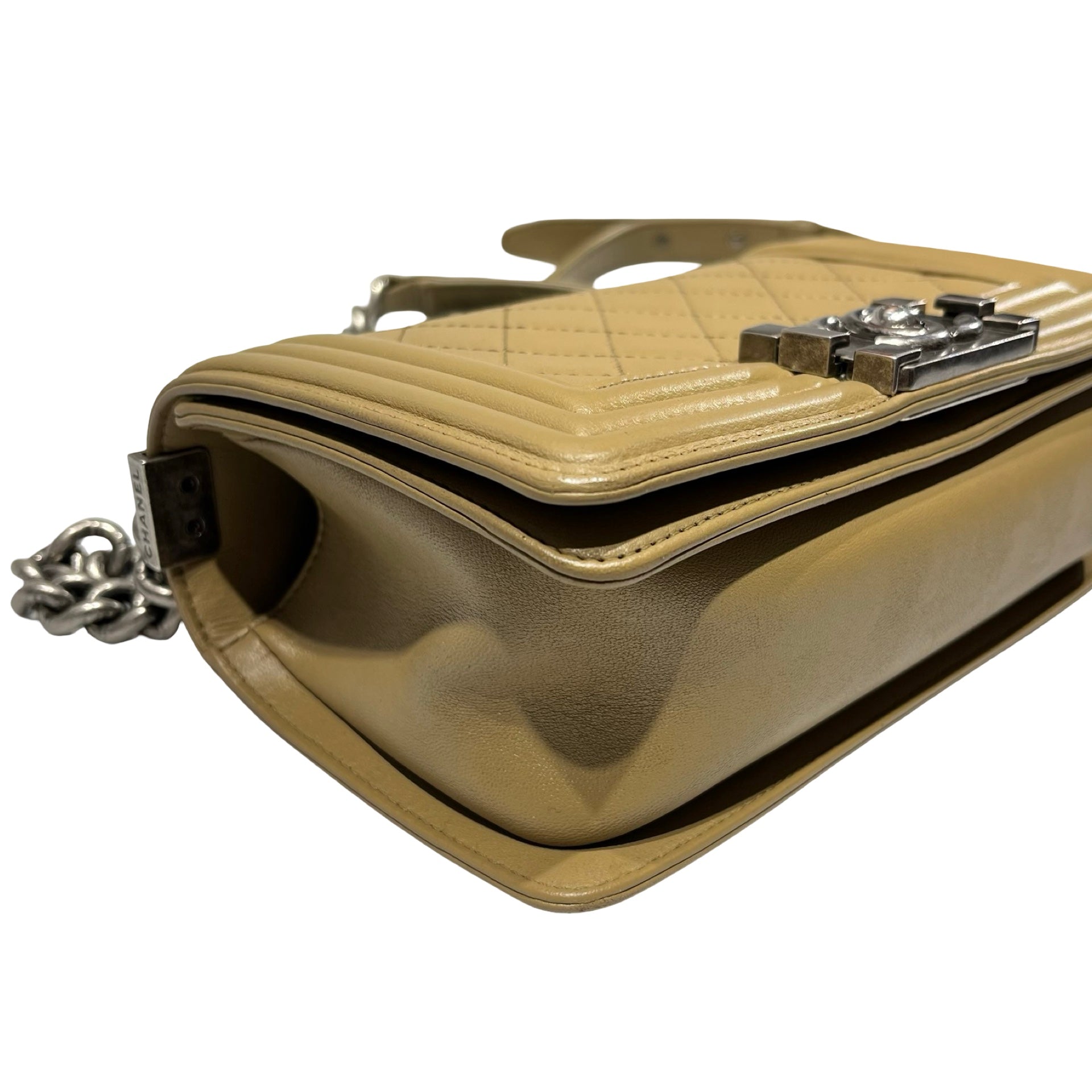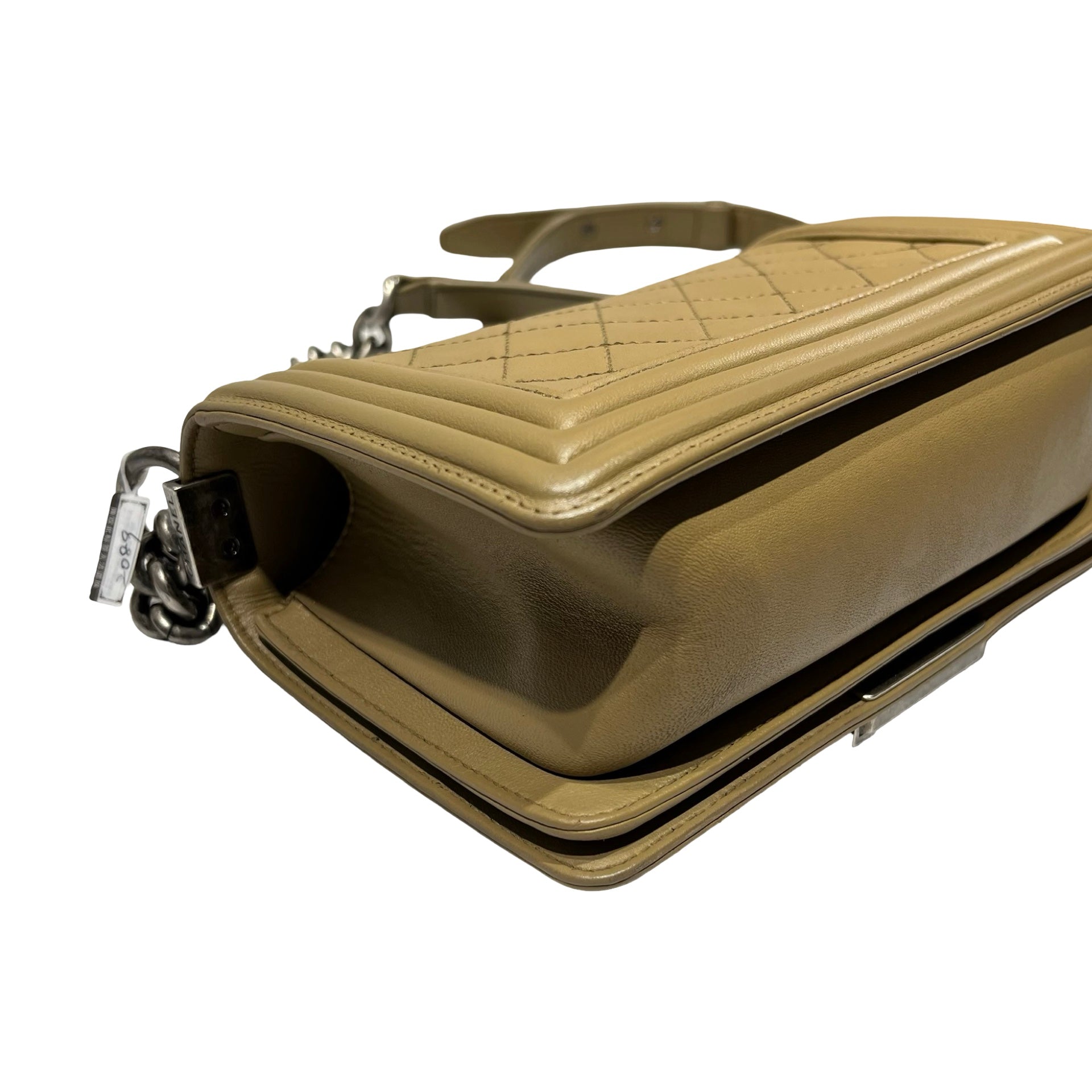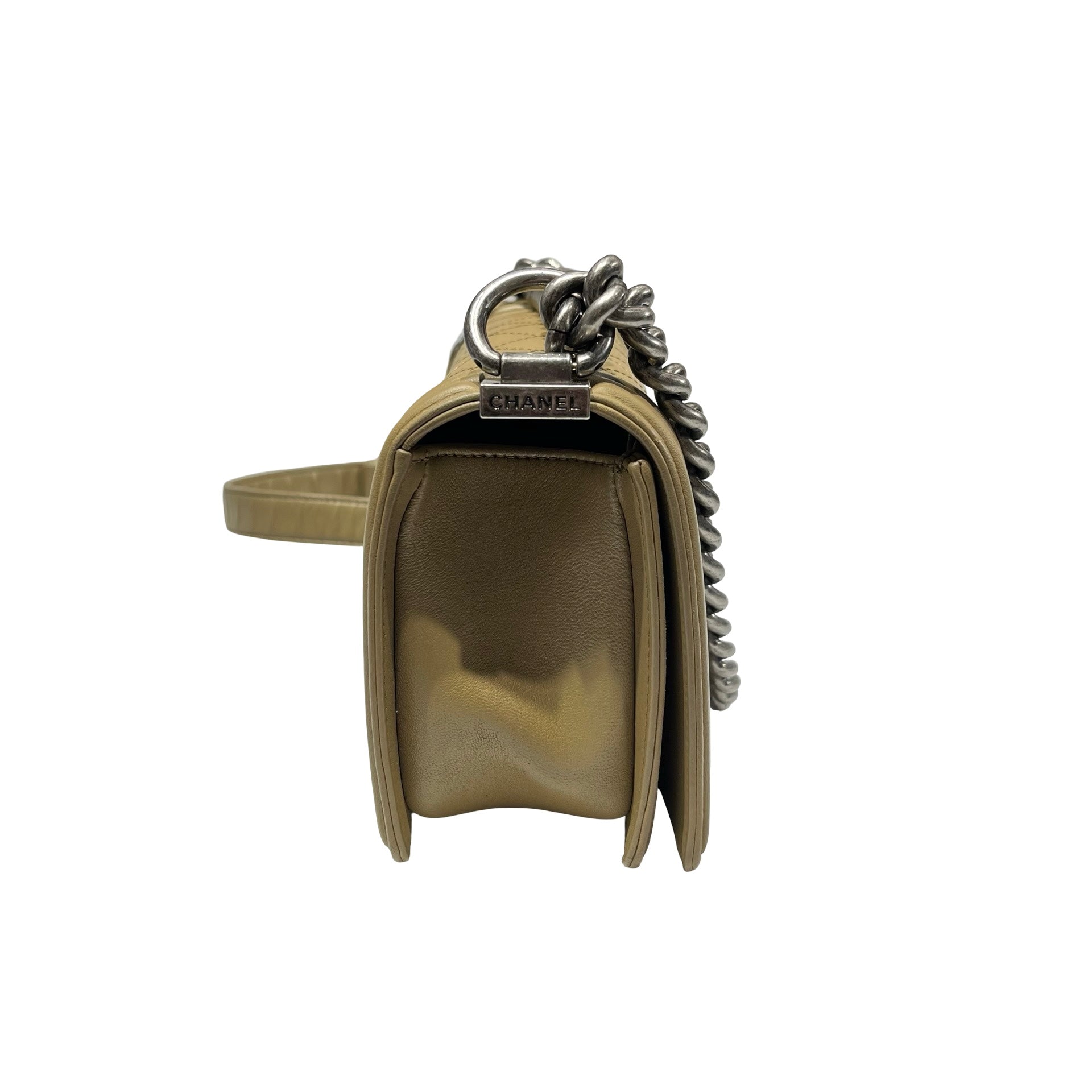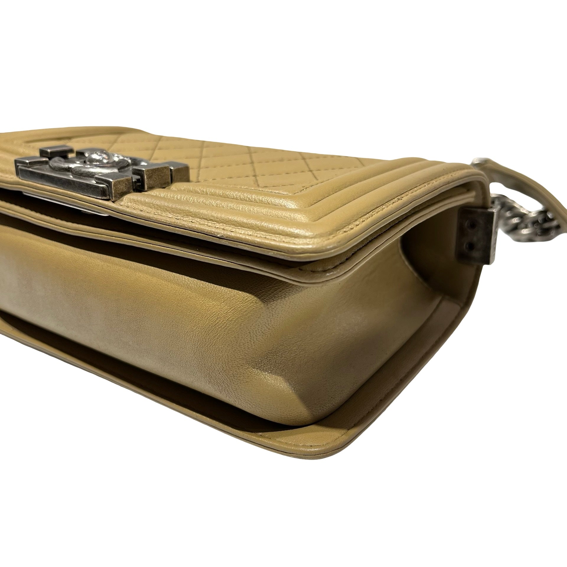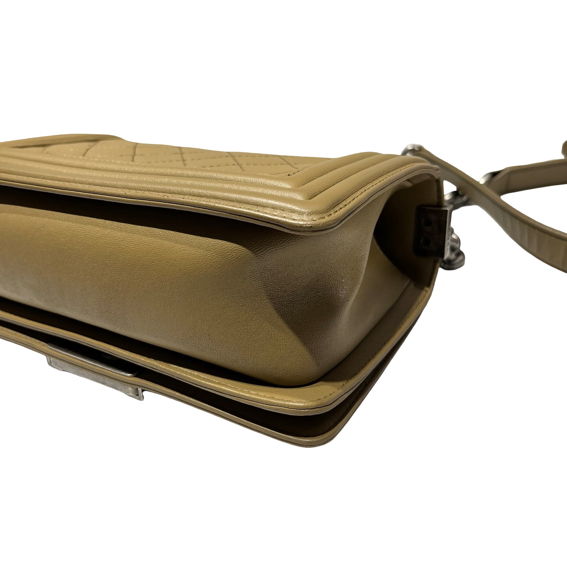 Used CHANEL Lambskin Leather Boy 20cm Shoulder Bag PHW Brown