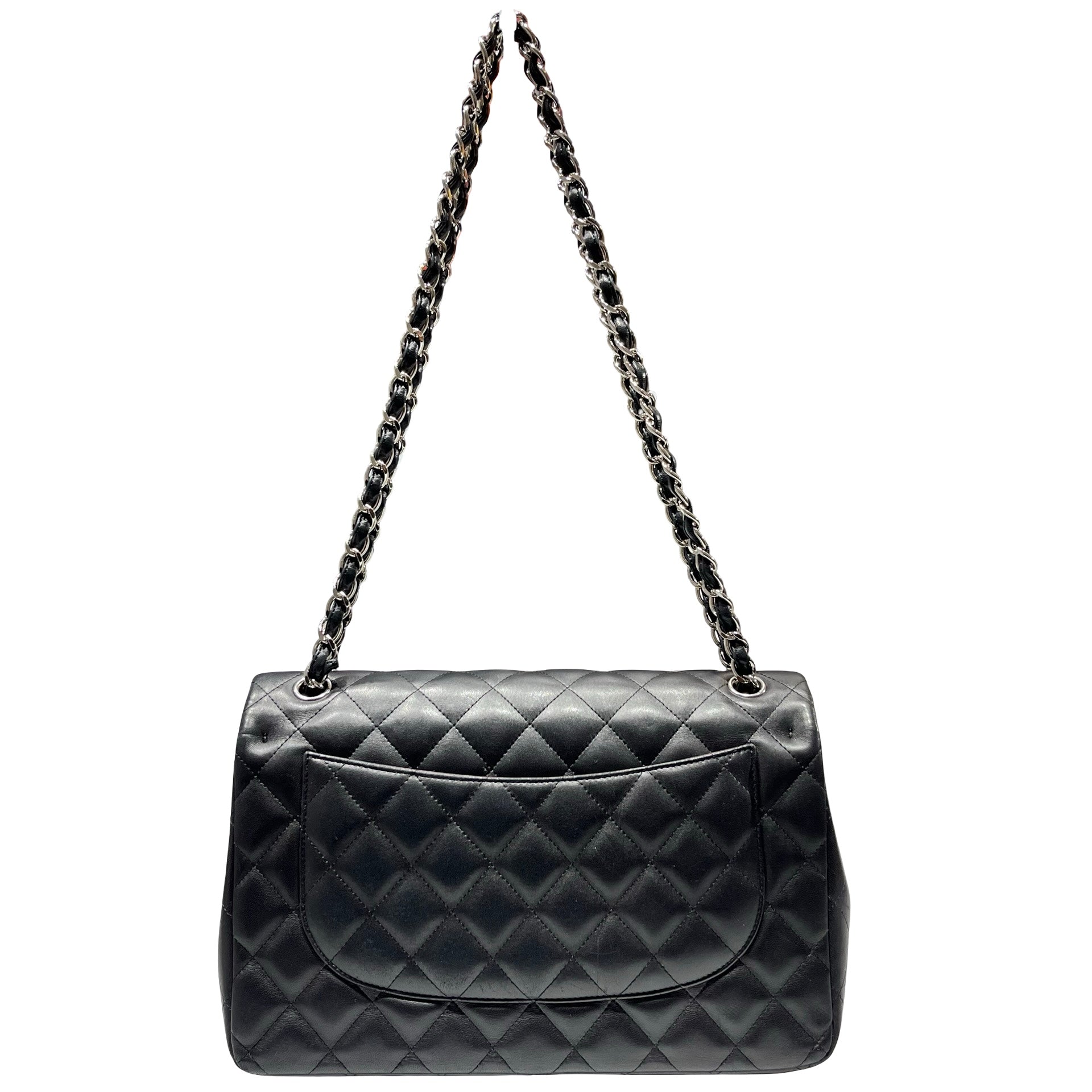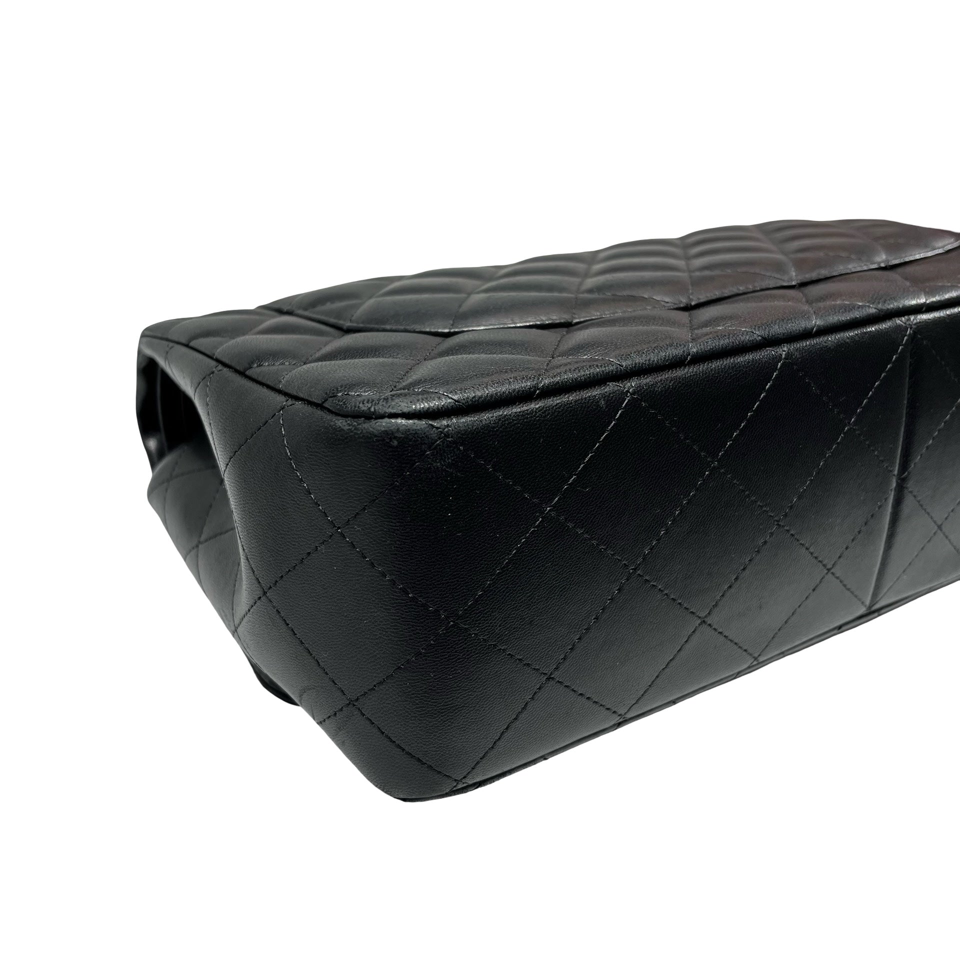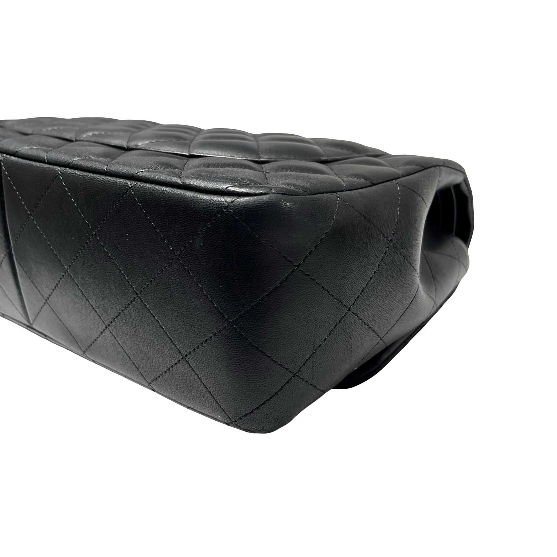 Used CHANEL Lambskin Leather Jumbo Shoulder Bag Black PHW