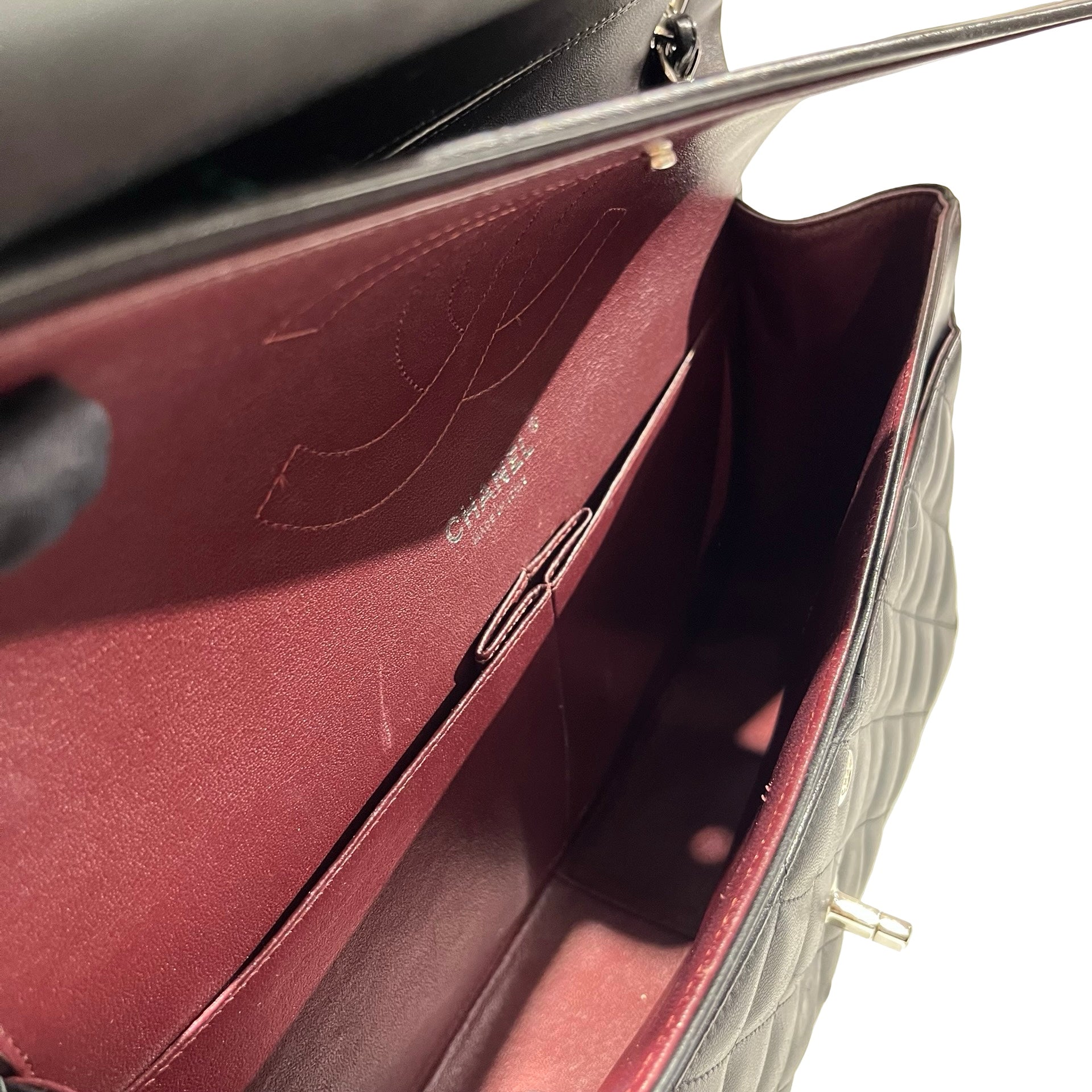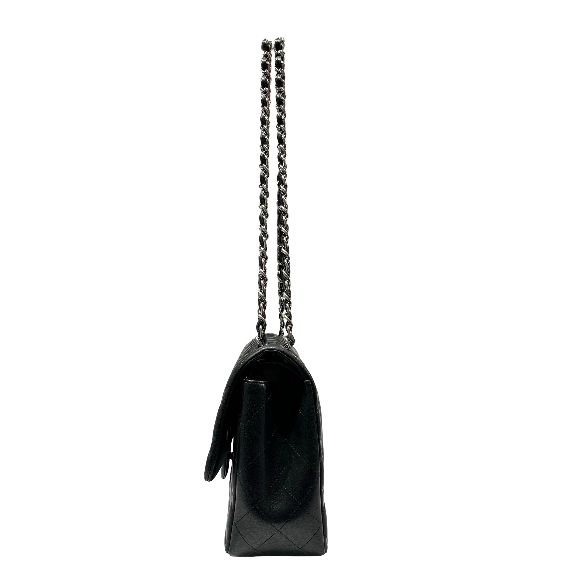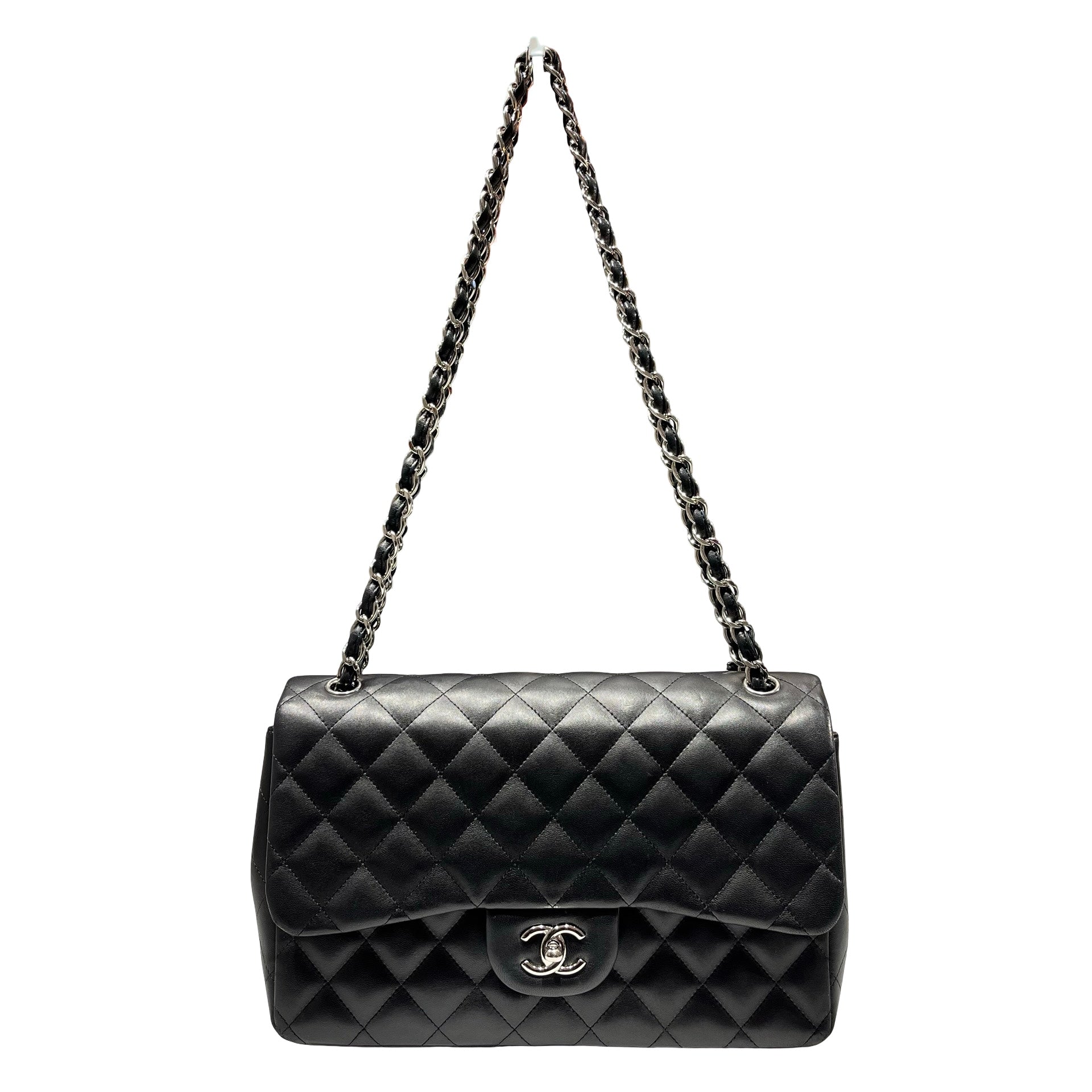 Used CHANEL Lambskin Leather Jumbo Shoulder Bag Black PHW
