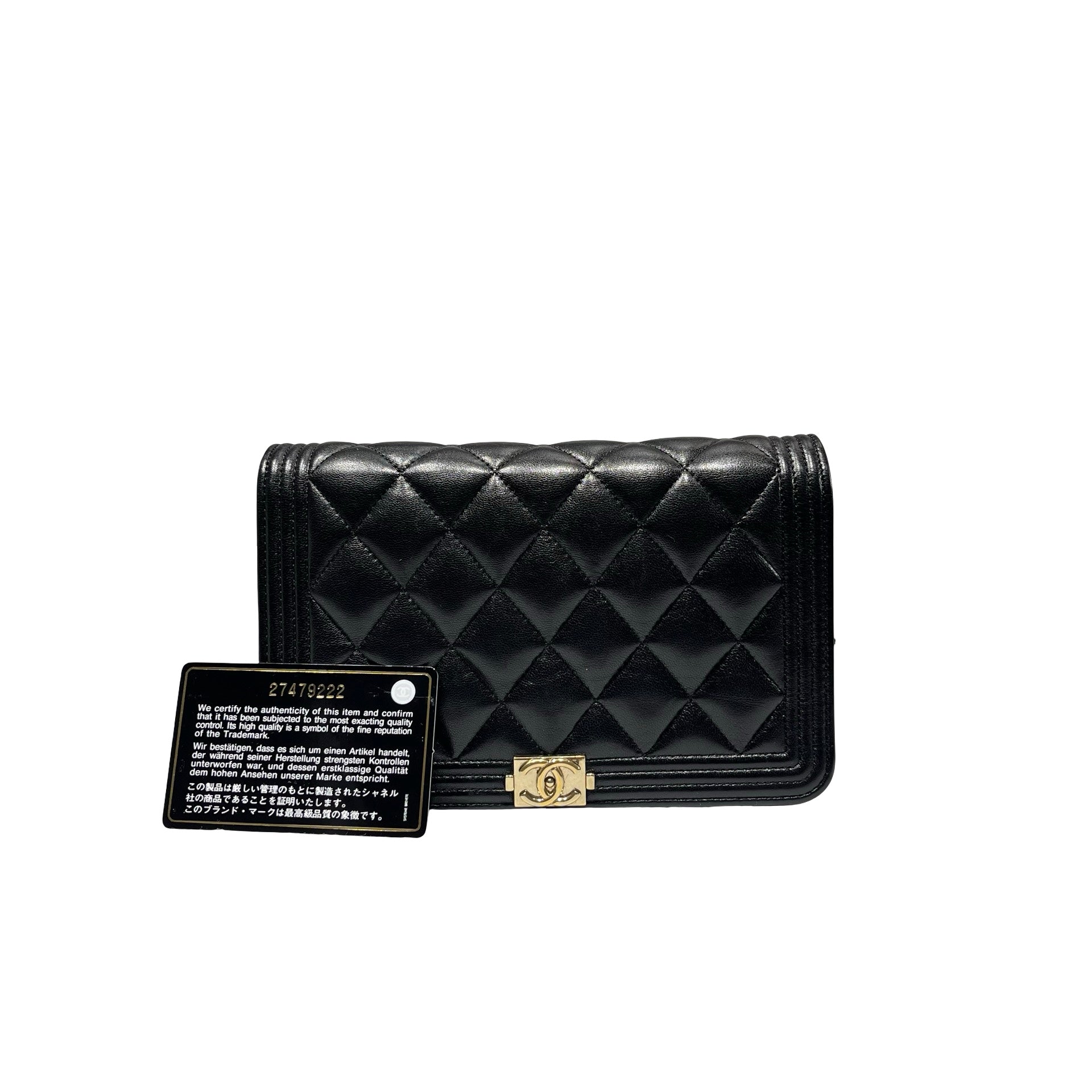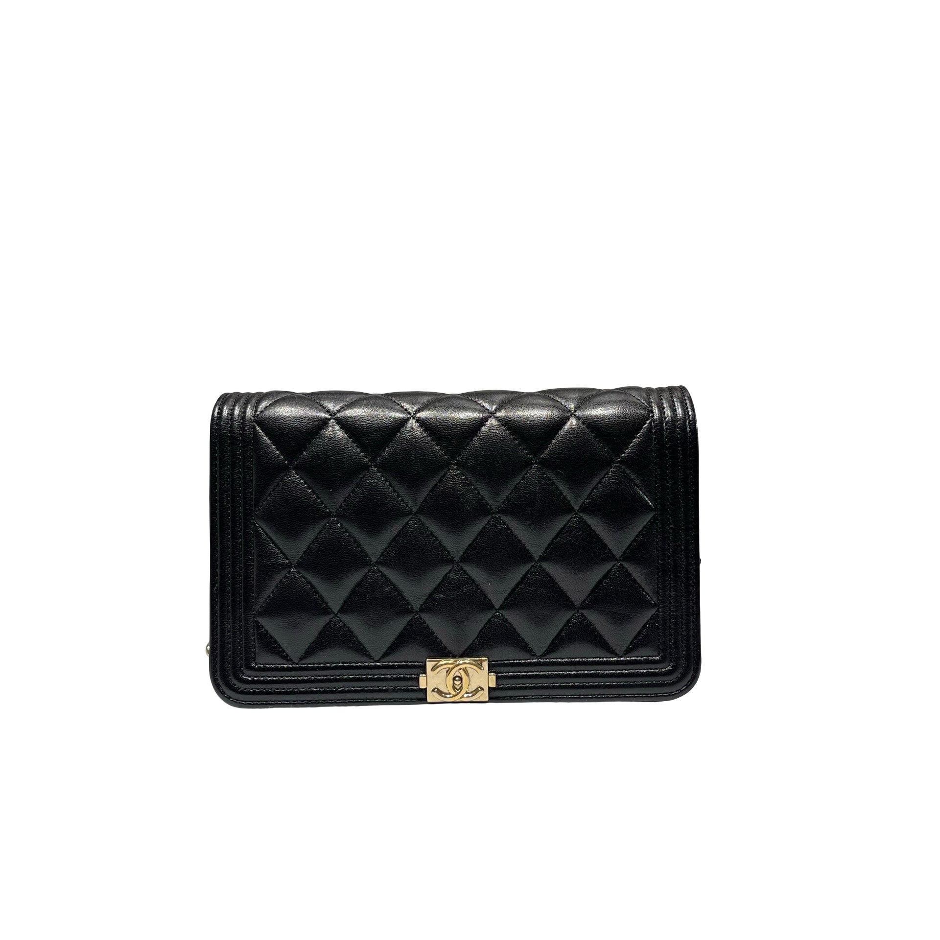 Used Chanel Lambskin Leather WOC Shoulder Bag Black GHW