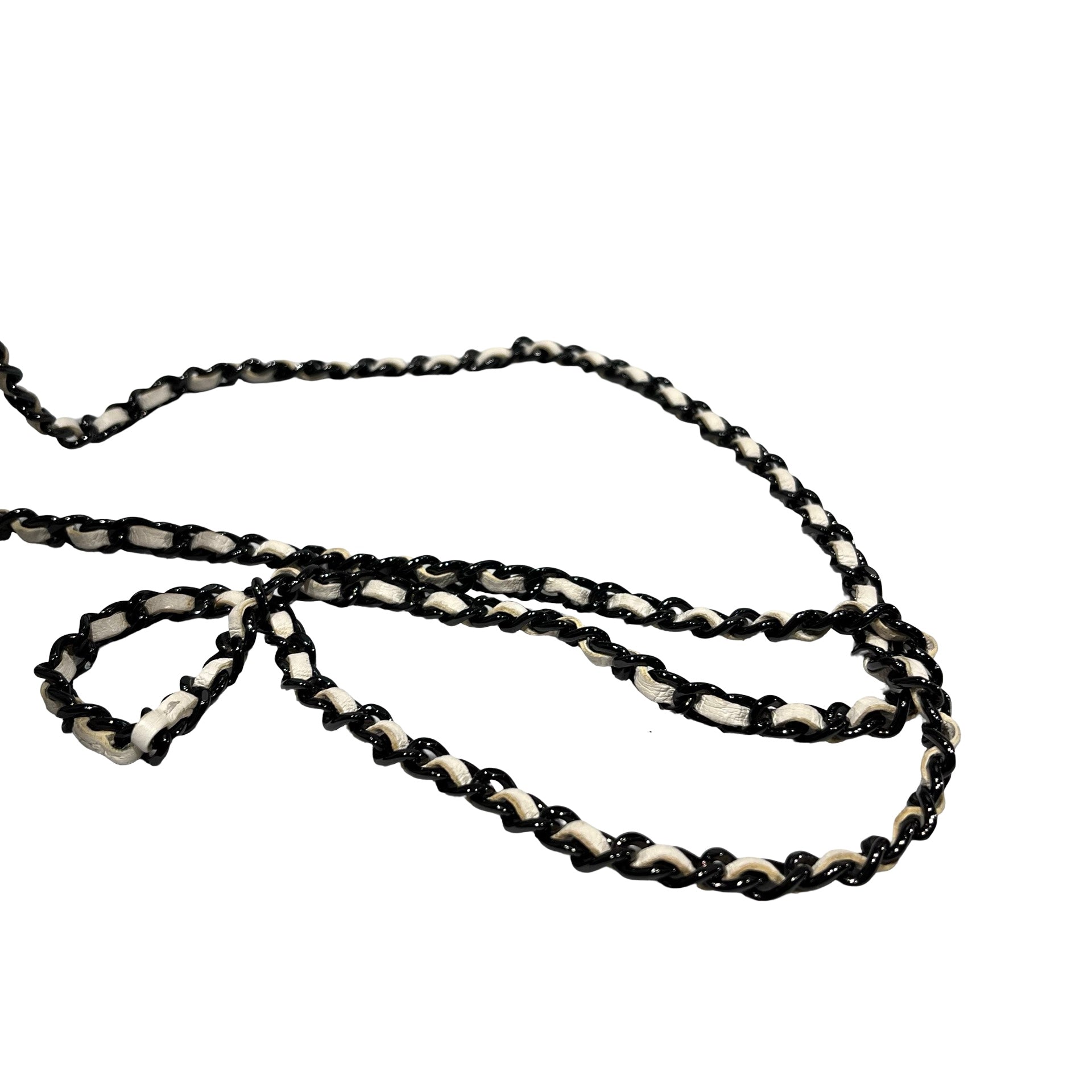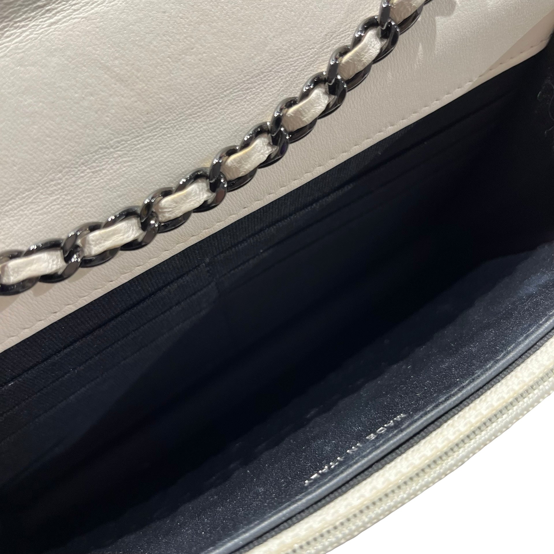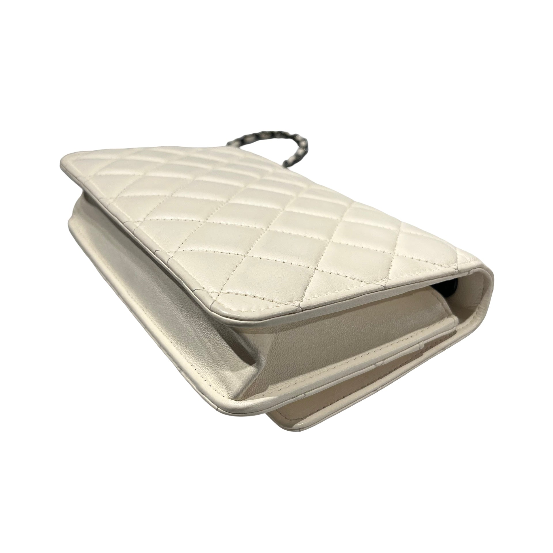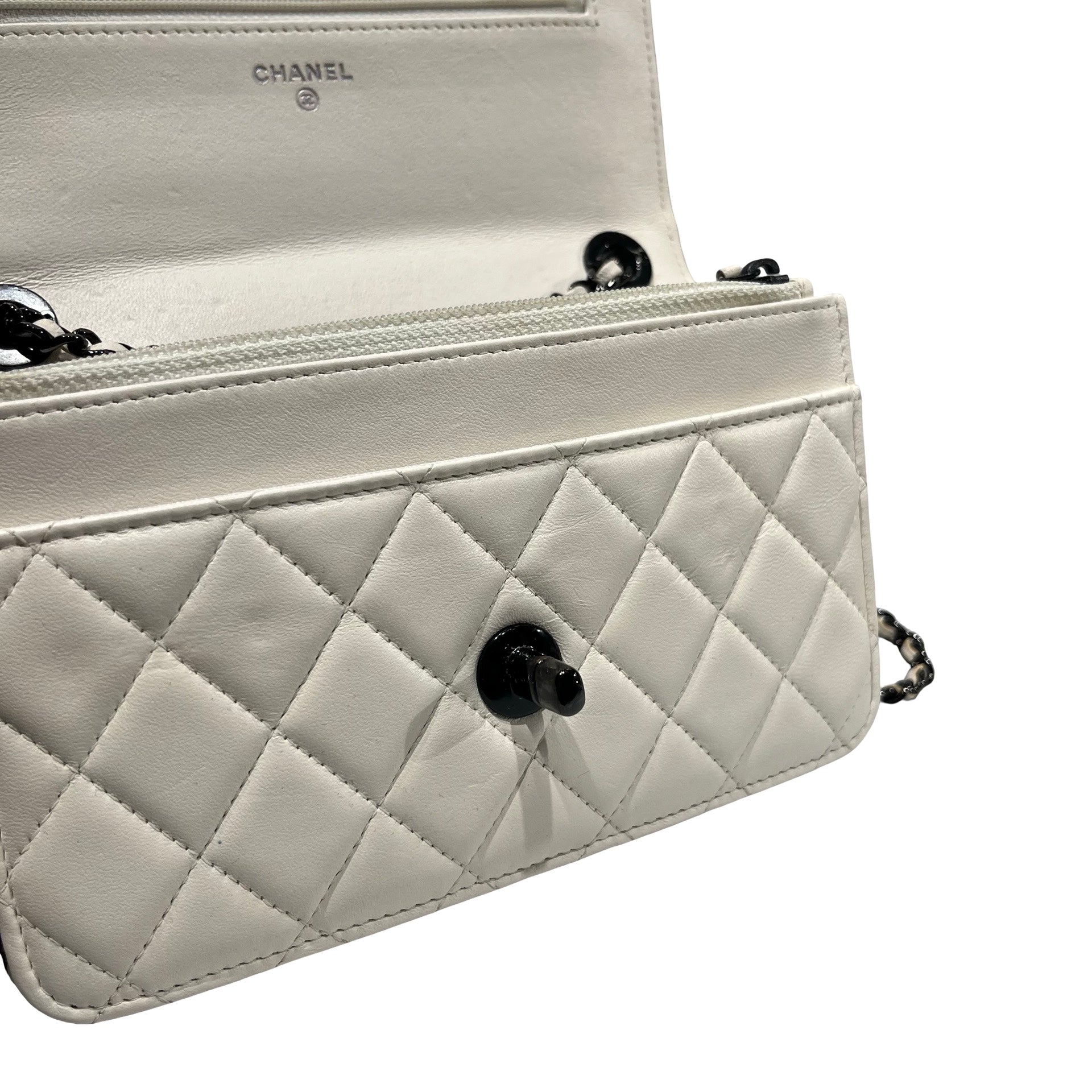 Used CHANEL Lambskin Leather WOC Shoulder Bag White Black Hardware
