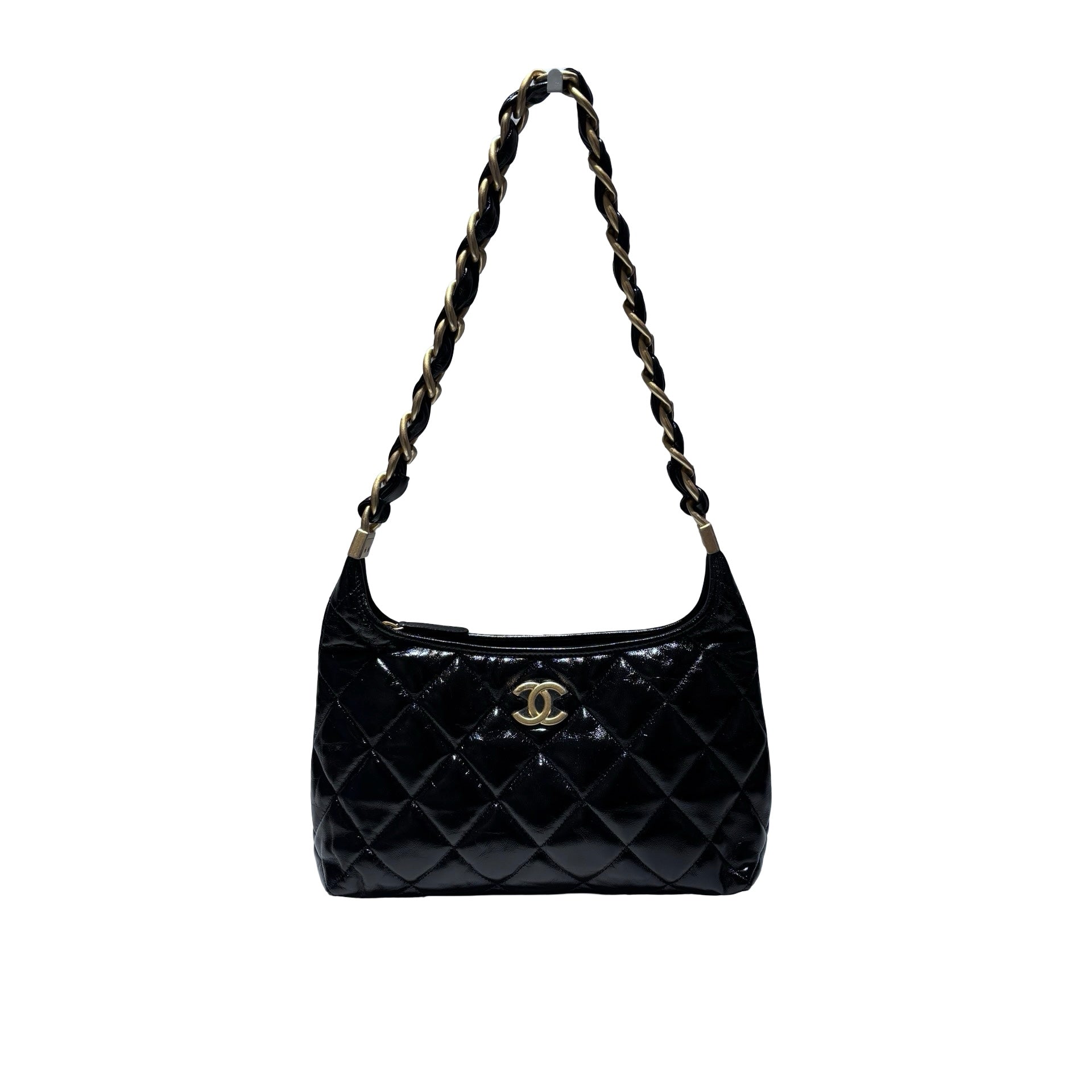 Used CHANEL Shiny Lambskin 24A Hobo Shoulder Bag